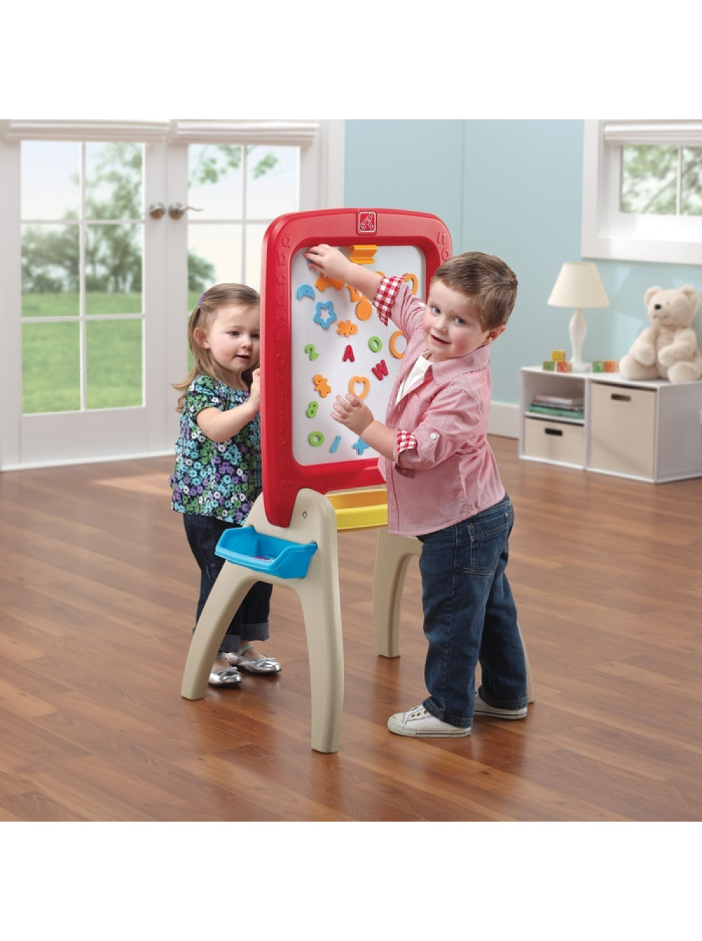 Магнитная доска для рисования All Around Easel сделает обучение Вашего малыша веселее и интереснее. Работать с этой доской смогут одновременно двое детей. С одной стороны - доска для маркера и магнитов, с другой - для письма и рисования мелом.