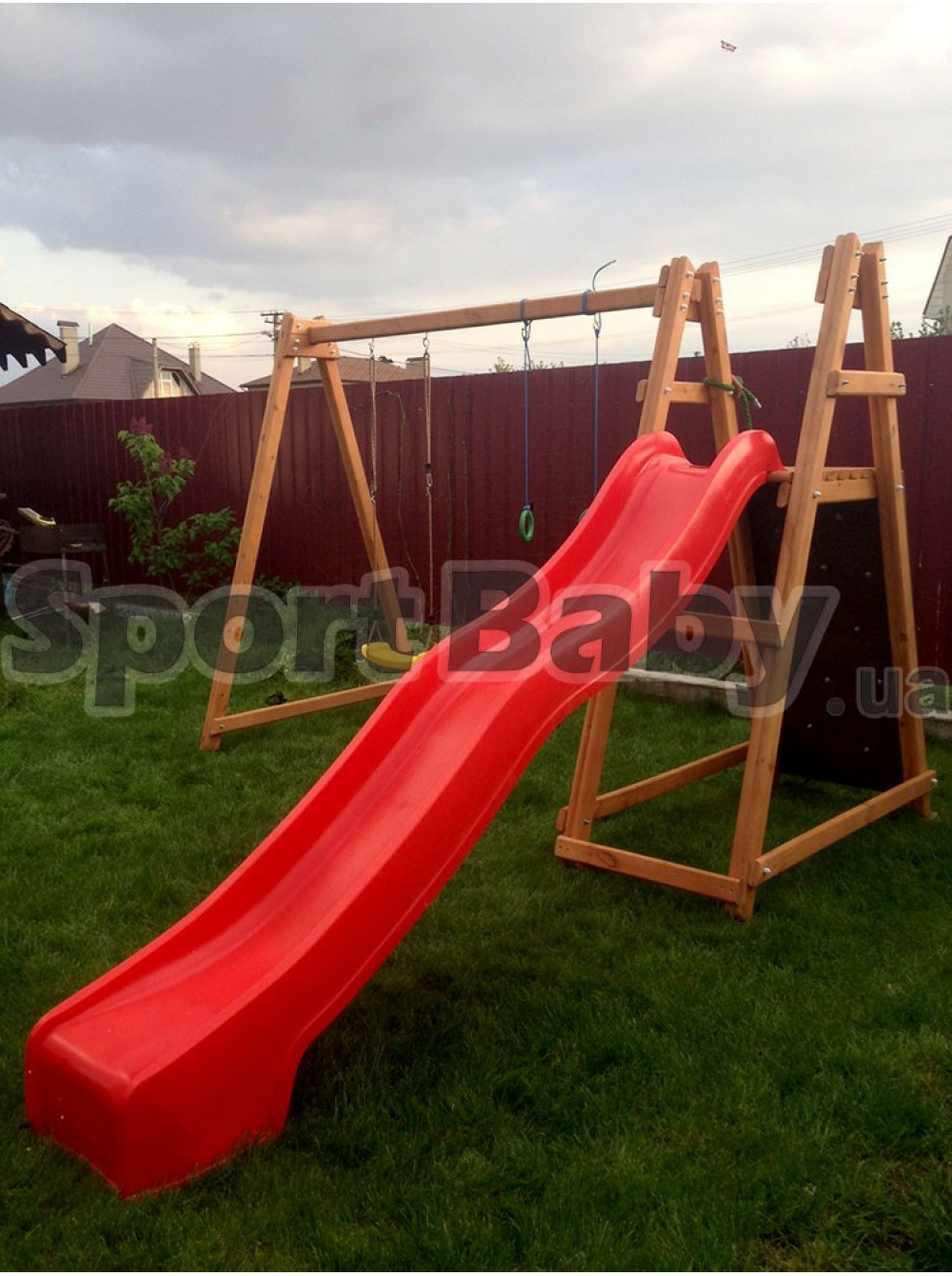 - Качели пластиковые, цвет на выбор - красный, синий, зеленый, можно заменить на деревянные