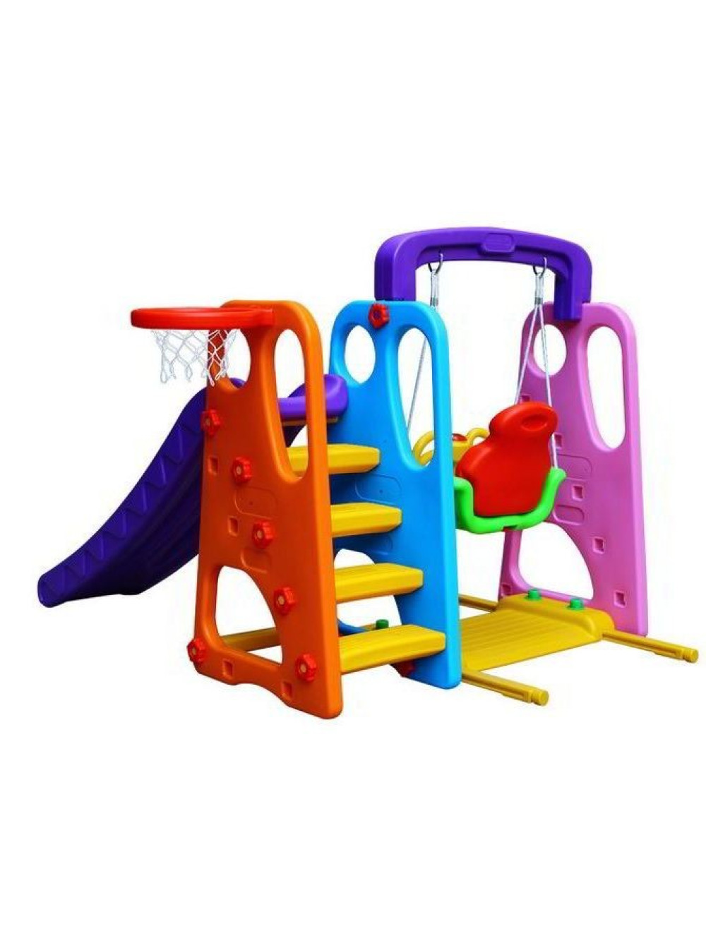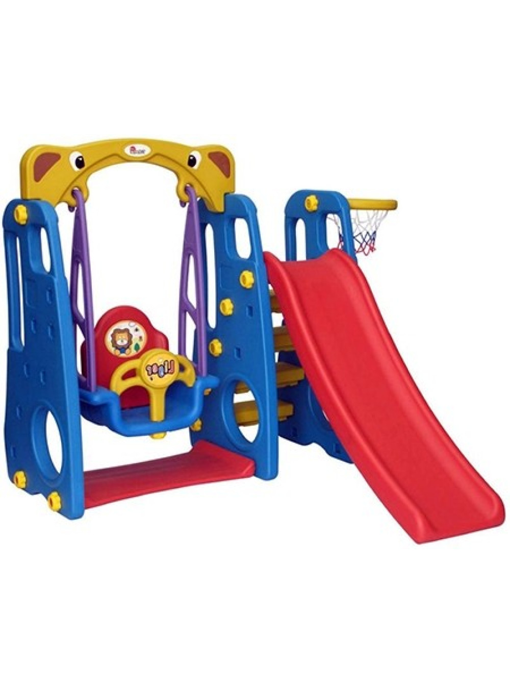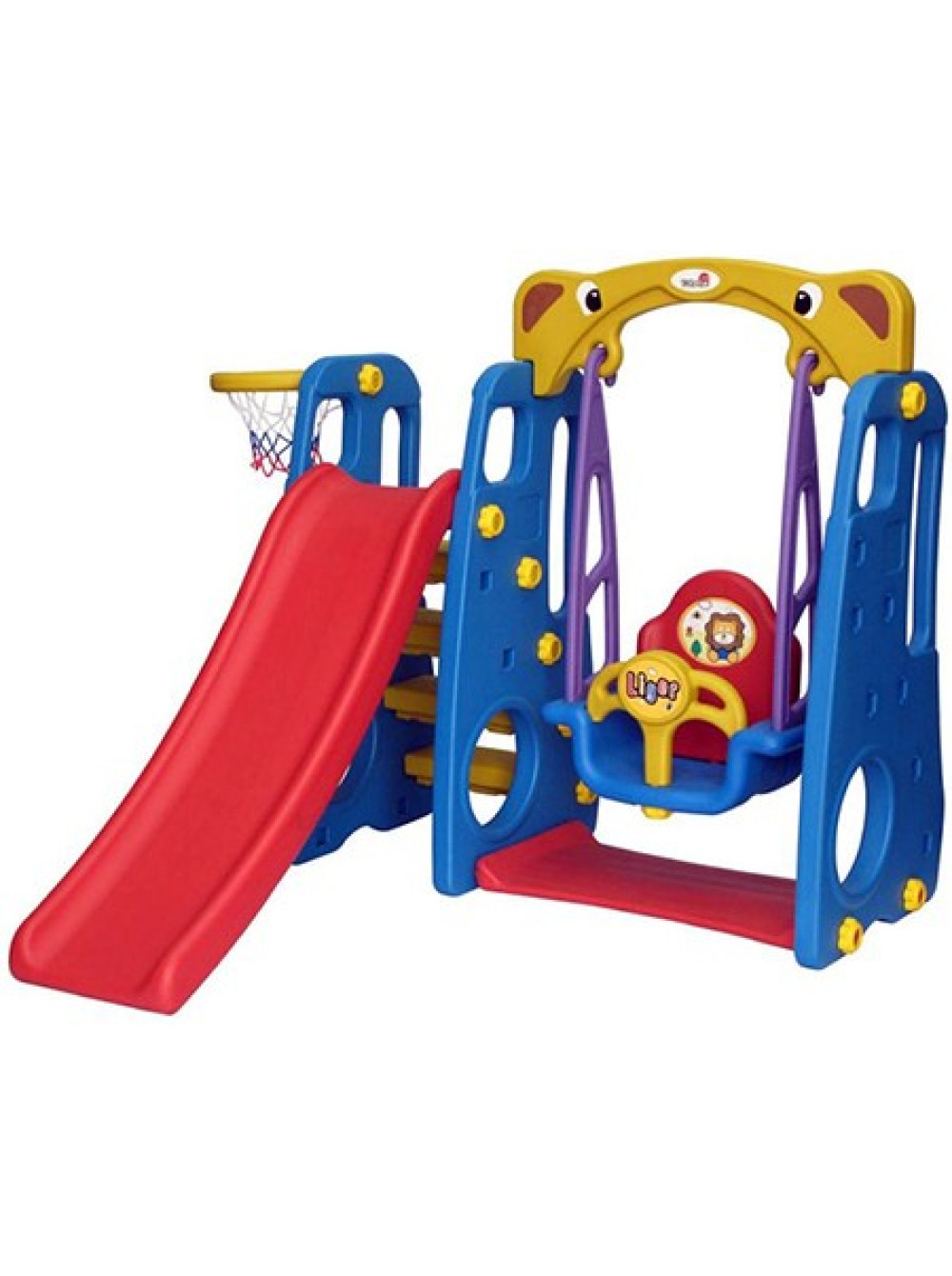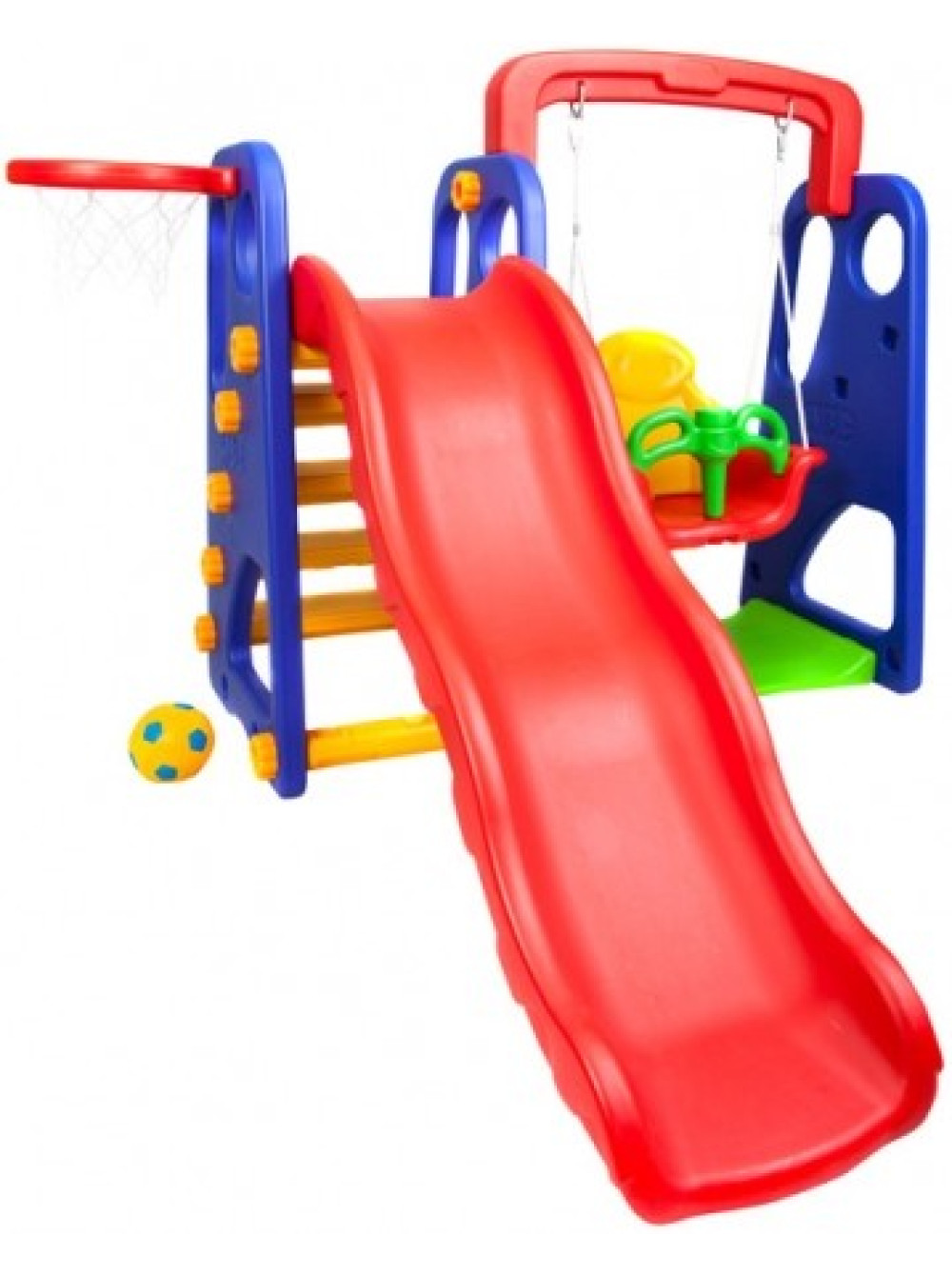 Для самых маленьких есть закрытые качели и горка, ну а детям постарше будет интересно попробовать свои силы в волейболе. Волейбольную корзину можно разместить как с правой так и с левой стороны площадки.
