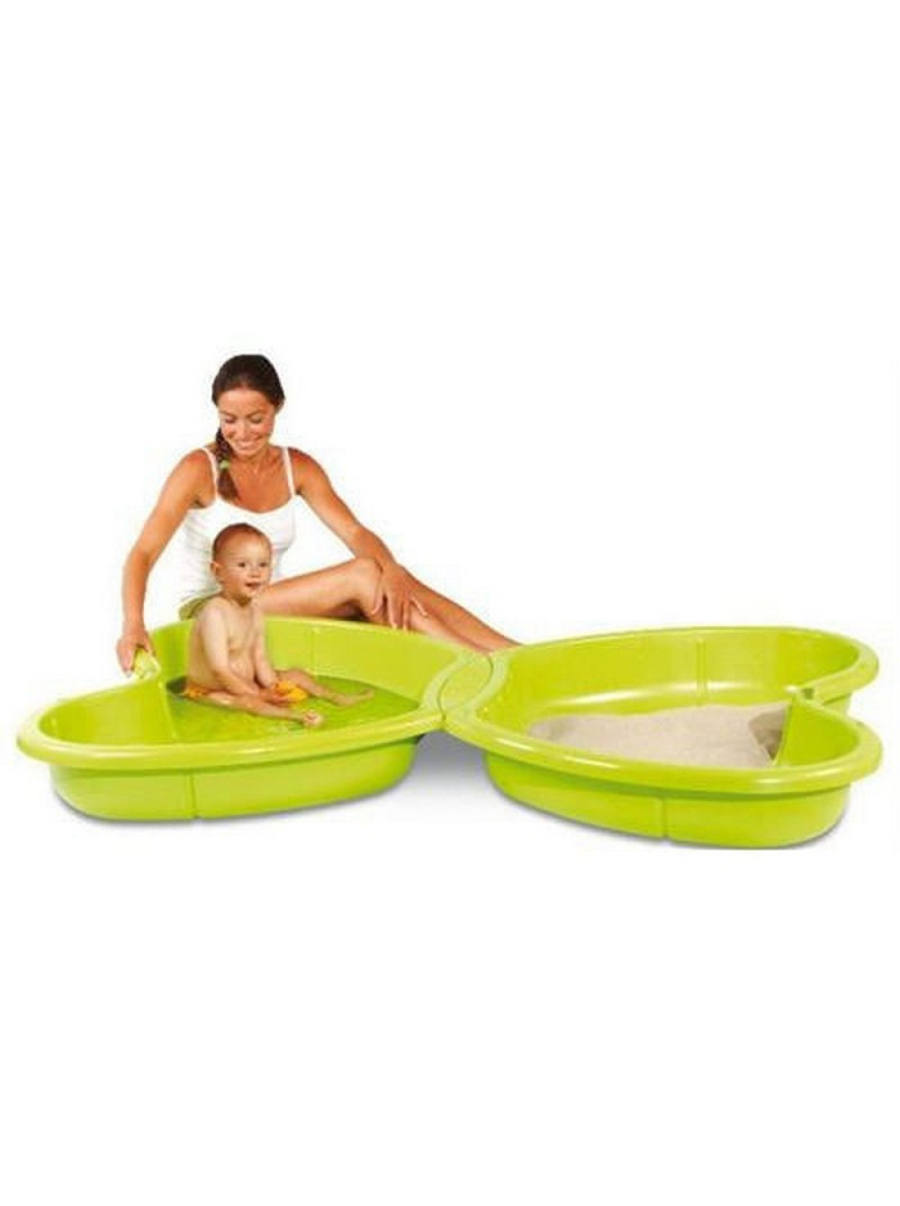 Например, если день выдался жарким и Вы не планируете использовать песочницу, то содержимое можно переместить в какой-либо сосуд, для временного хранения и освободившейся ёмкостью в течении дня пользоваться как крышкой для бассейна. И наоборот. А для большего удовольствия в солнечный денек к бассейну можно подключить шланг, что бы получился фонтанчик и мини водный аттракцион готов!