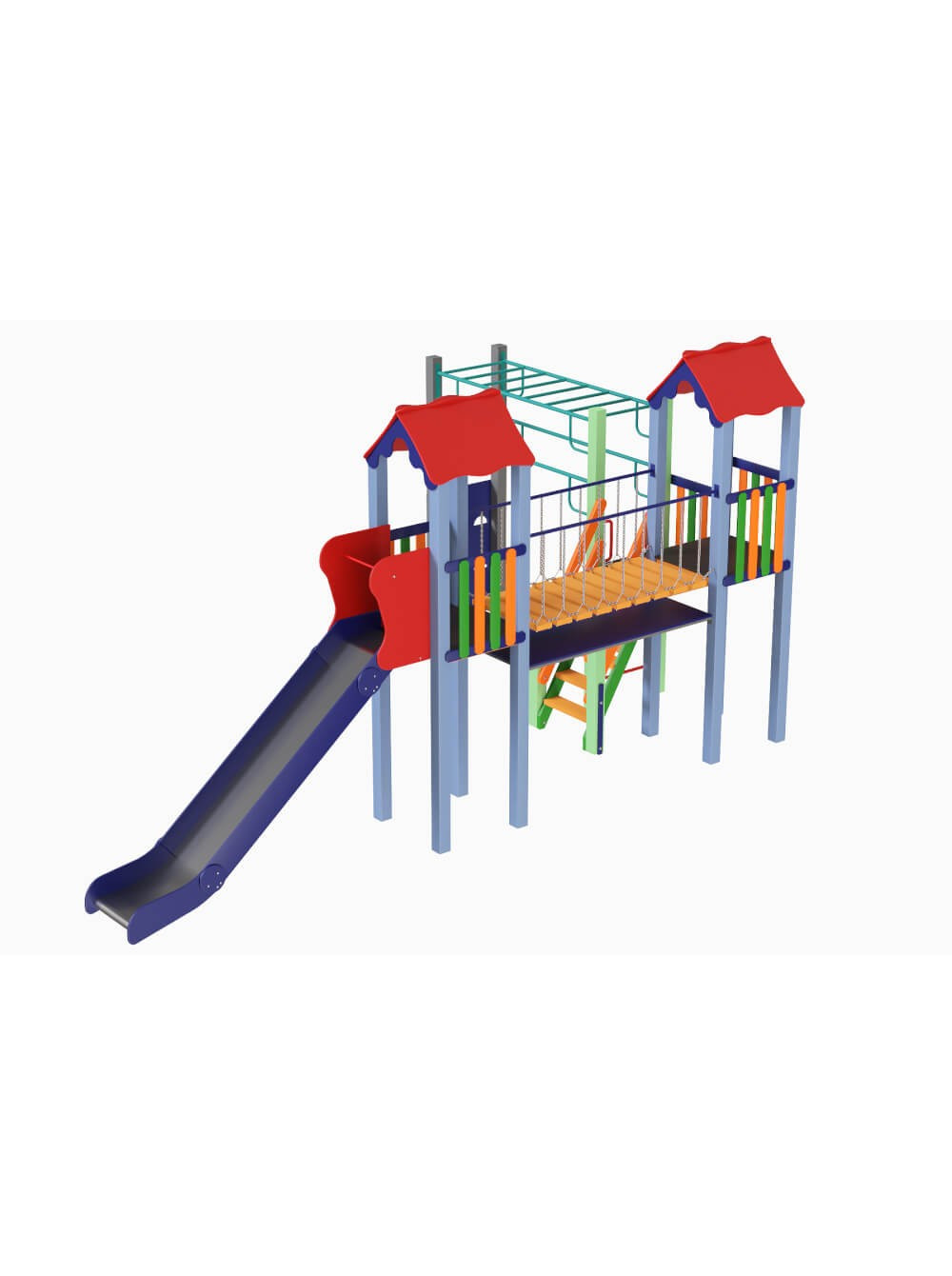 Игровой комплекс Школьный включает 2 башни, переход, песочницу, металлическую горку и рукоход. Игровая площадка Школьный - это увлекательная и интересная площадка, где каждый ребенок найдет чем заняться. Игровой комплекс Школьный предназначен для детей возраста от шести до двенадцати лет.