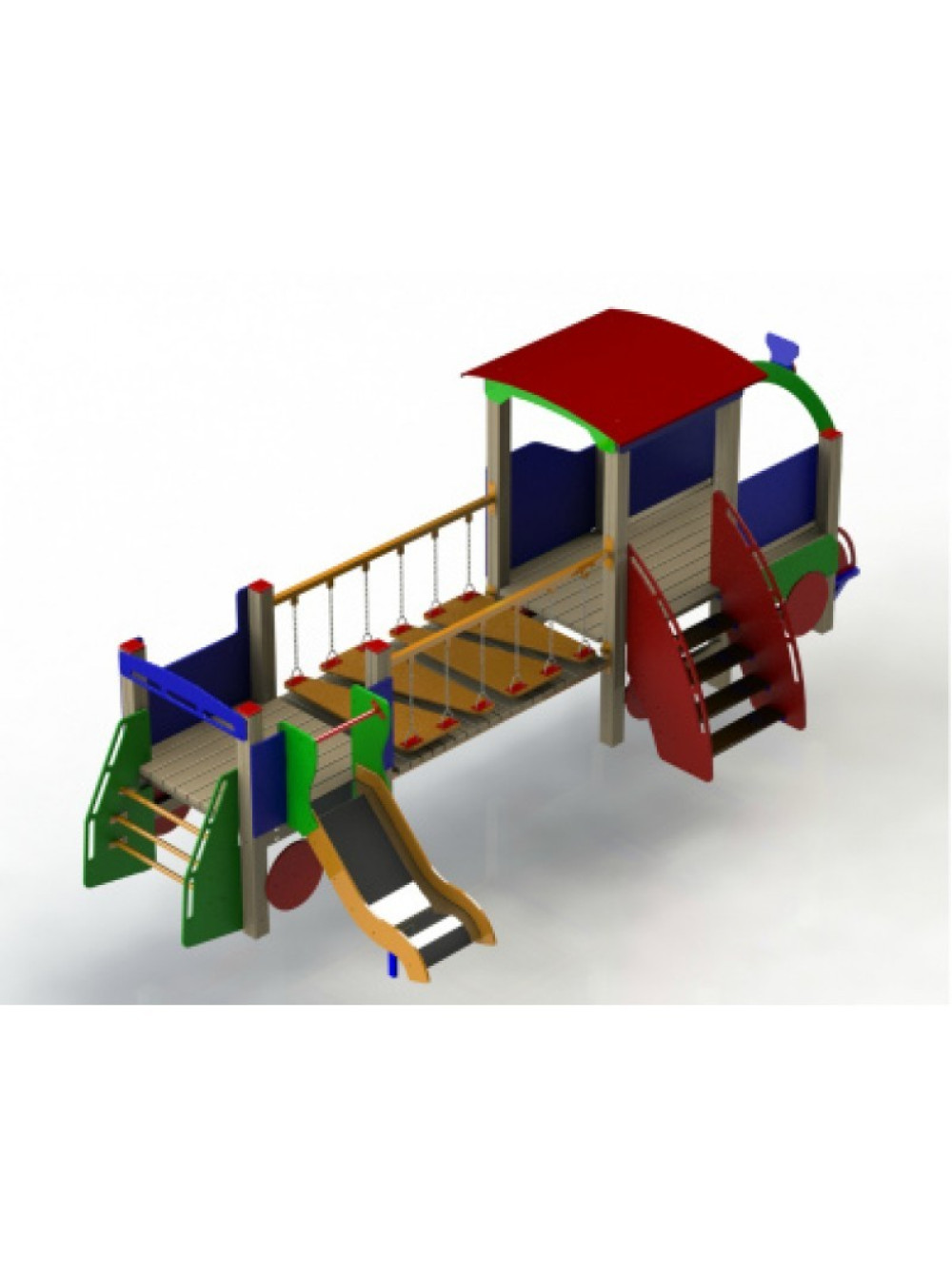 Игровой комплекс уличный Паровоз-1 - это прекрасный способ для детских игр возрастом от 3 до 7 лет. Игровой комплекс Паровоз-1 изготовлен из металлических и деревянных элементов и состоит из 2-х кабин из фанеры (одна с крышей, вторая без), которые соединены ступеньками на металлических цепях. Позаботьтесь об качественном и интересном отдыхе своих детей на свежем воздухе вместе с игровым комплексом уличный Паровоз-1.