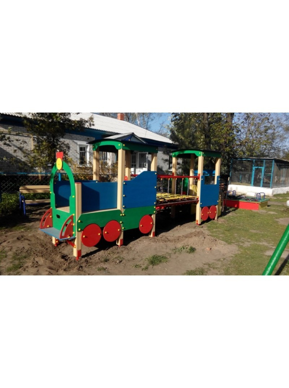 Игровой комплекс уличный Паровоз с вагончиком очень понравится деткам младшего возраста. Ведь комплекс Паровоз с вагончиком является интересным и многофункциональным игровым элементом и состоит из двух кабин, которые соединены ступеньками на металлических цепях. Такую площадку можно приобрести как для детского сада, так и для детской площадки.