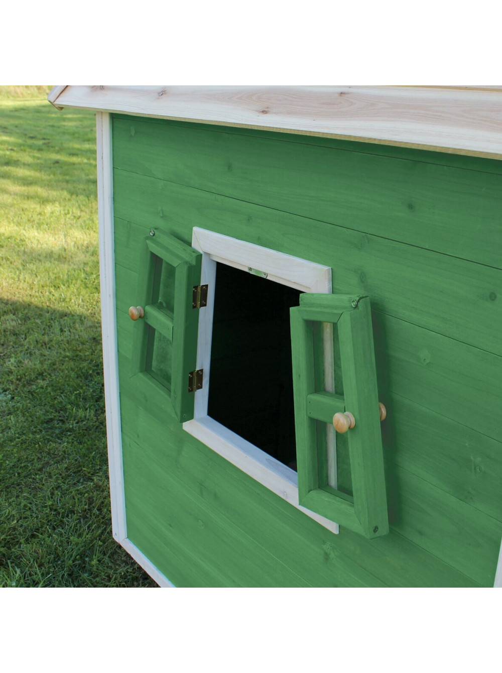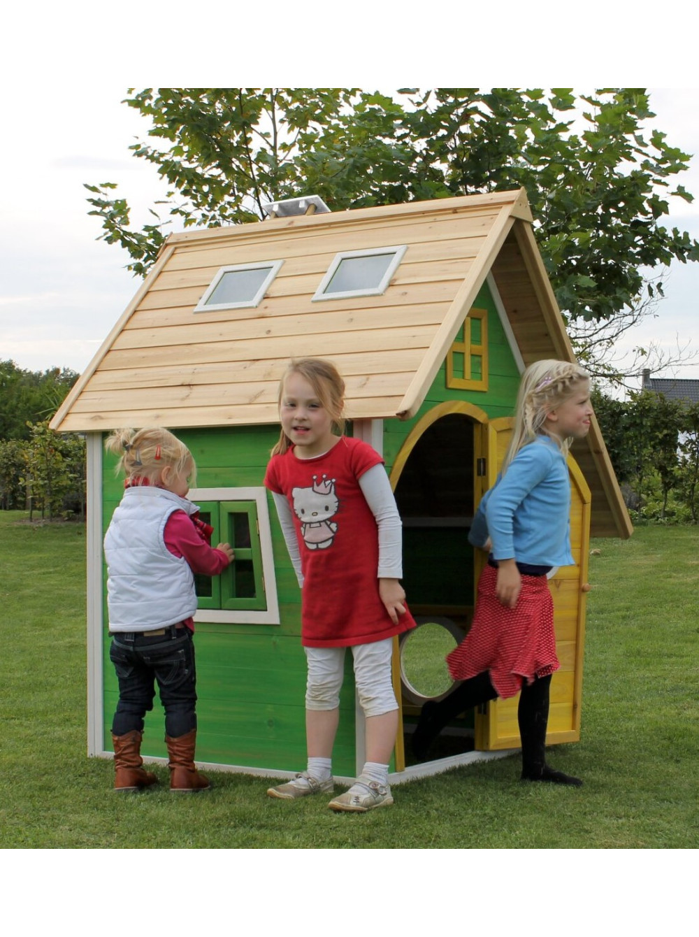 Деревянный домик для детей EXIT Fantasia КЕДР зелений - каждый ребёнок будет чувствовать себя в таком игровом домике комфортно и уютно, просто как дома. Он компактен и размещается прямо на земле (без пола). Его даже самостоятельно совсем несложно собрать из наборных панелей.