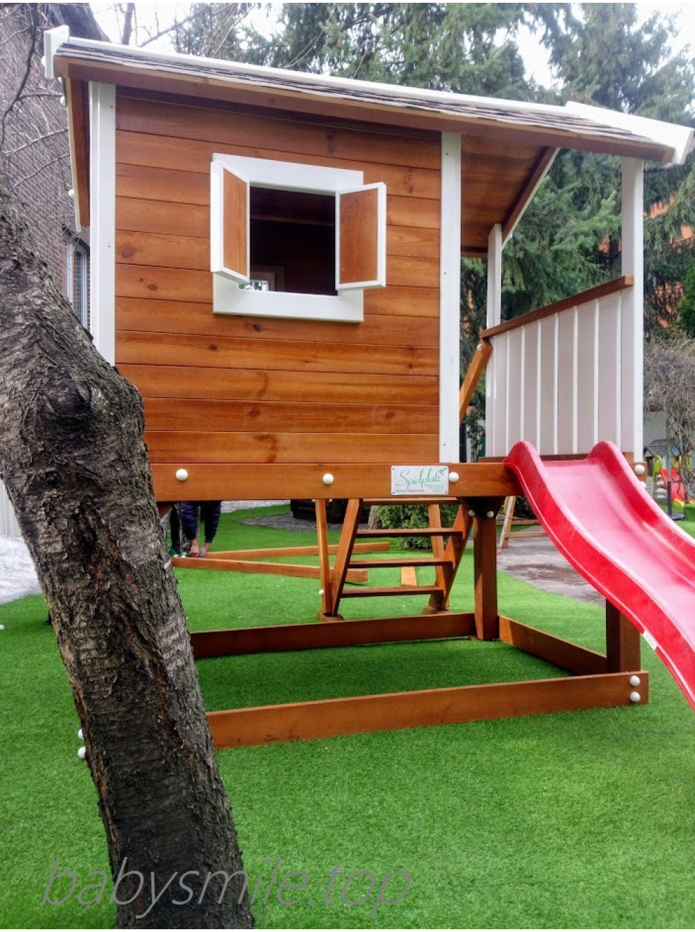 Деревянный домик для детей с горкой Spielplatz, наша первая работа с установкой в 2022 году 12 февраля. Весенне-летний сезон - открыт! Заказчик частный детский садик в г. Киеве. В дополнение к домику еще сделали и качели.
