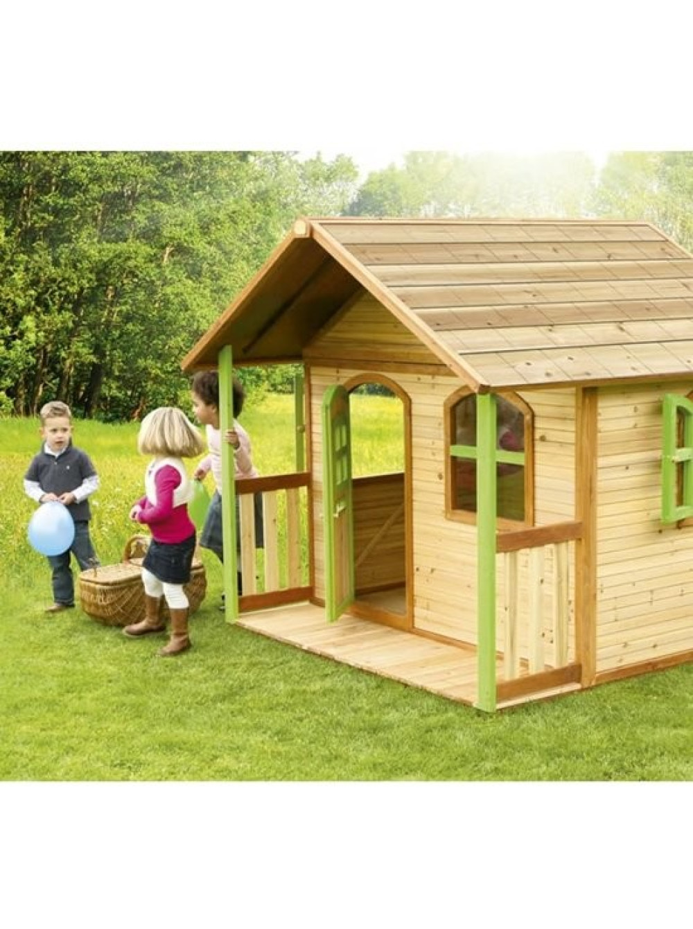 Деревянный домик для детей Увлекательная игра - большой и выглядит совсем как настоящий дом. Летом такой игровой элемент на территории для игр станет настоящей находкой, с ним сможет играть целая компания детворы днями напролёт. Здесь можно достойно встретить друзей и организовать множество фантазийных и образных игр. И, даже если ребёнок будет играть один, ему тоже будет весело и интересно, ведь теперь у него будет своё личное жилище, такое же как у взрослых.