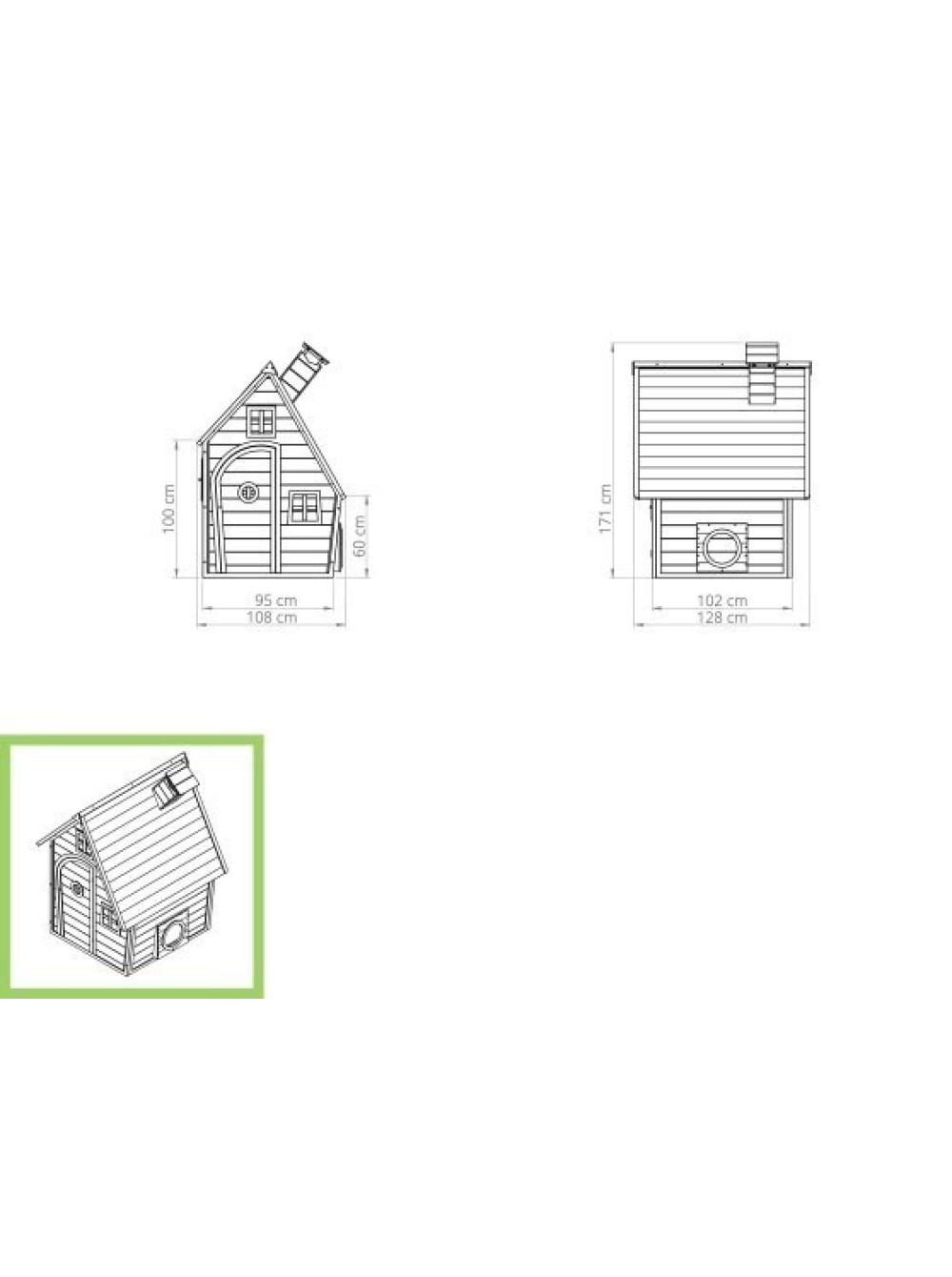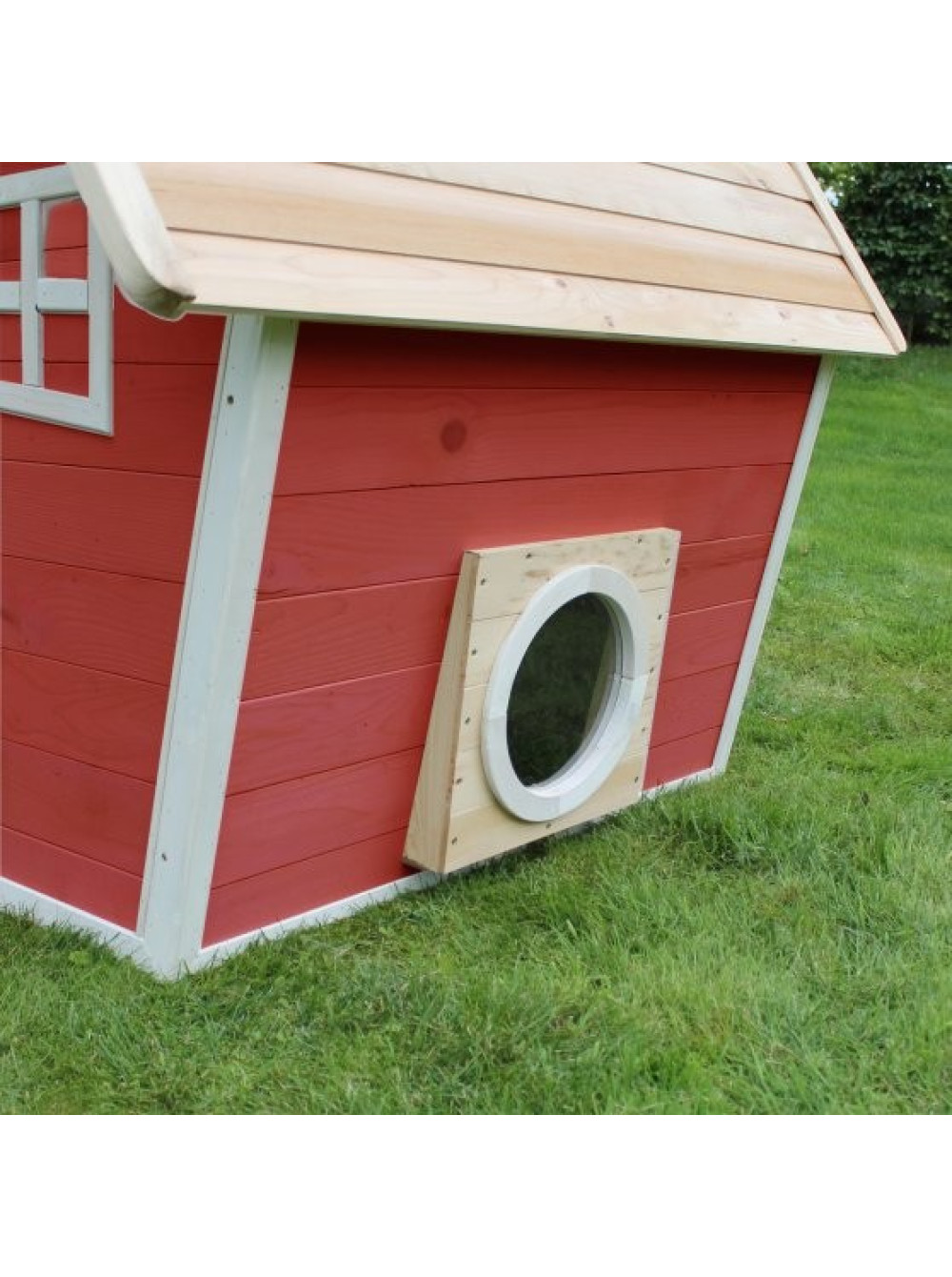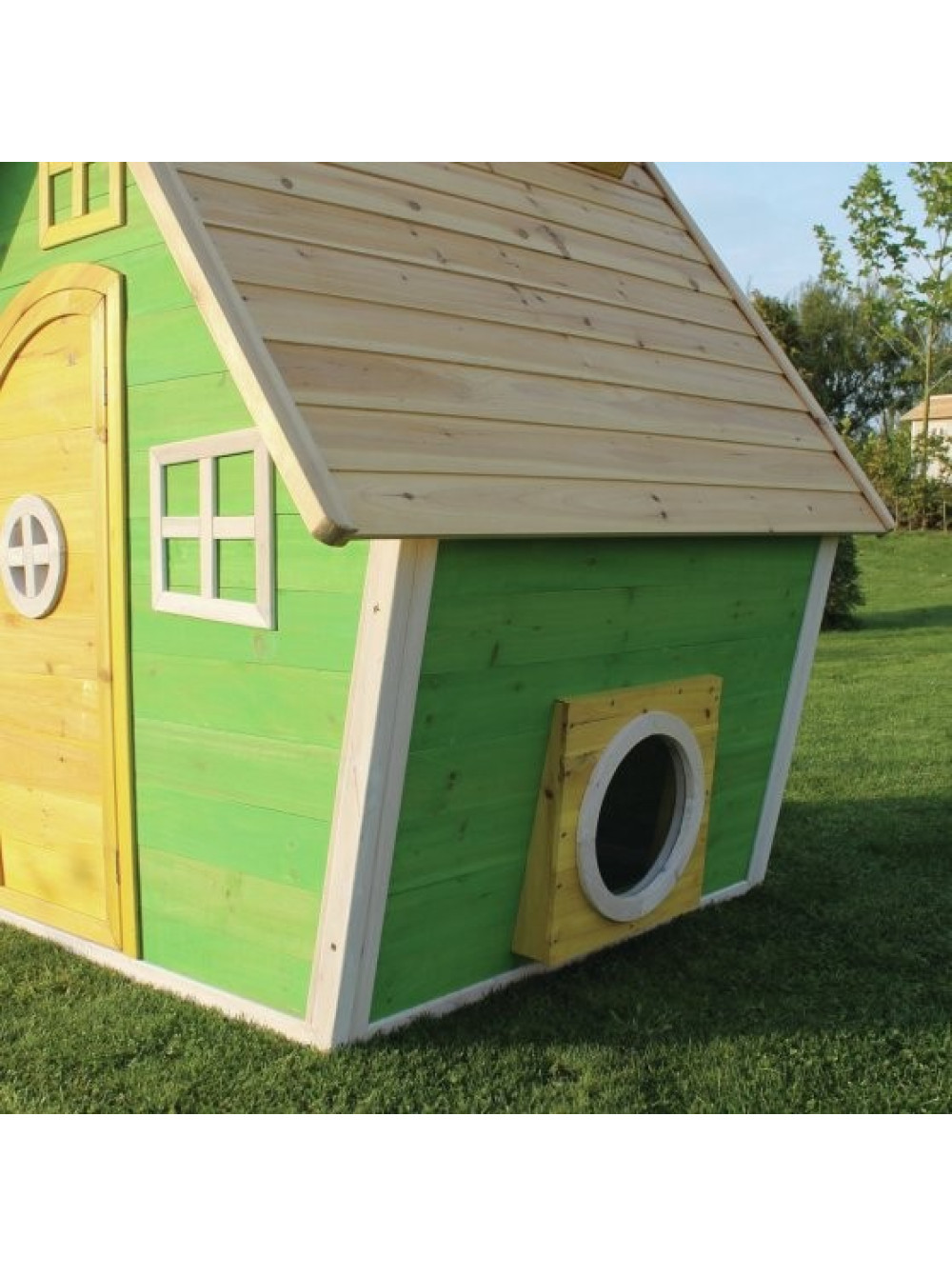 Домик весьма реалистичен, окна и двери - настоящие, открываются и закрываются, есть даже окошки в крыше и это именно то, что нравится детям для игры во взрослую жизнь. В домике два входа и выхода, один традиционный, через дверь, а второй выполнен в виде круглого лаза.