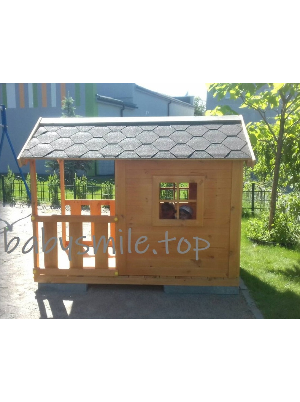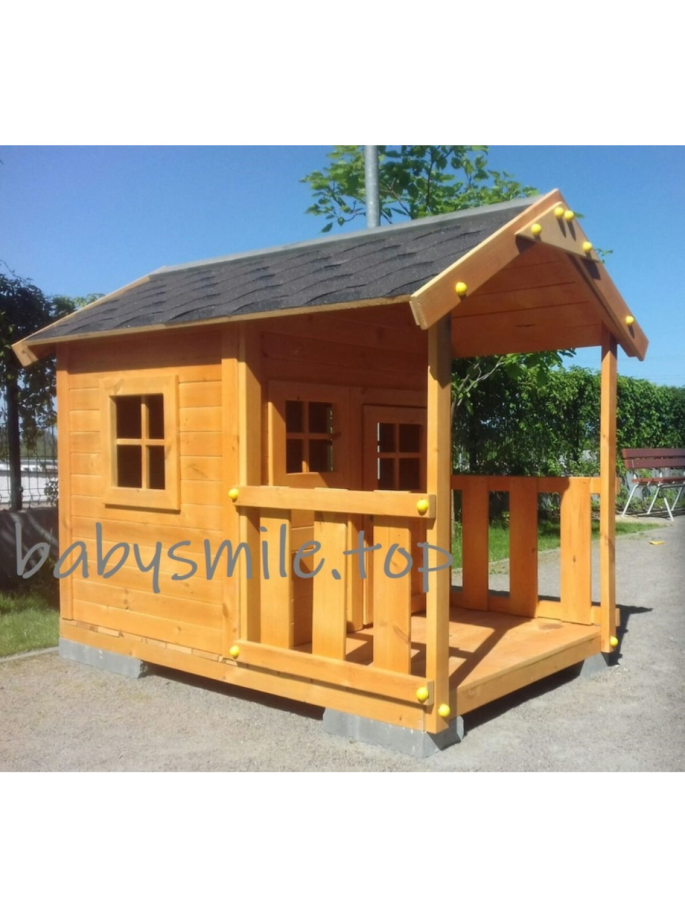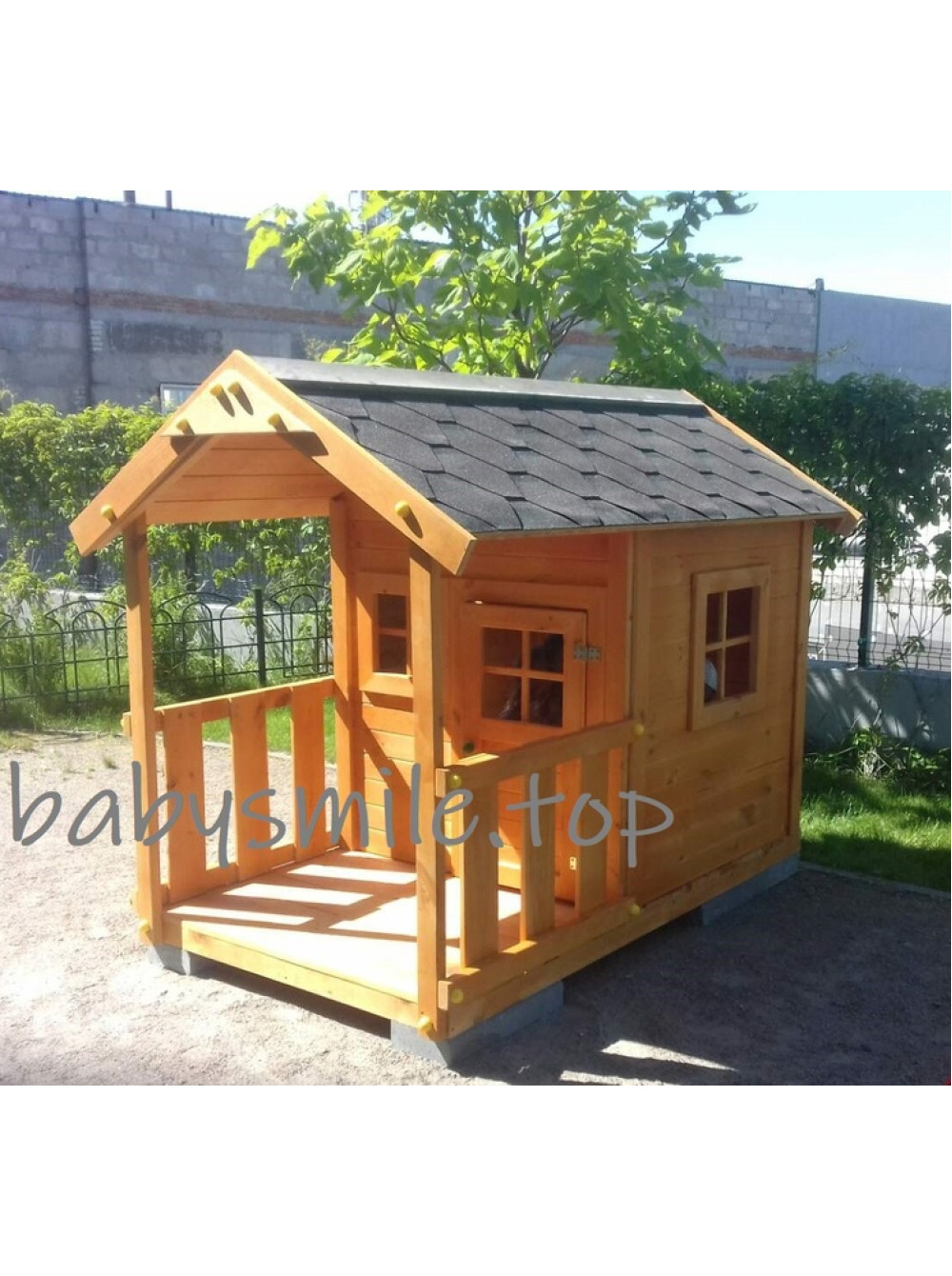 Домик для детей с верандой выполнен из качественной и экологически чистой древесины сосны и покрыт антисептиком. Такая игрушка может занять достойное место на территории Вашего дачного участка или частного дома и без сомнения станет любимым местом проведения досуга у Вашей ребятни.