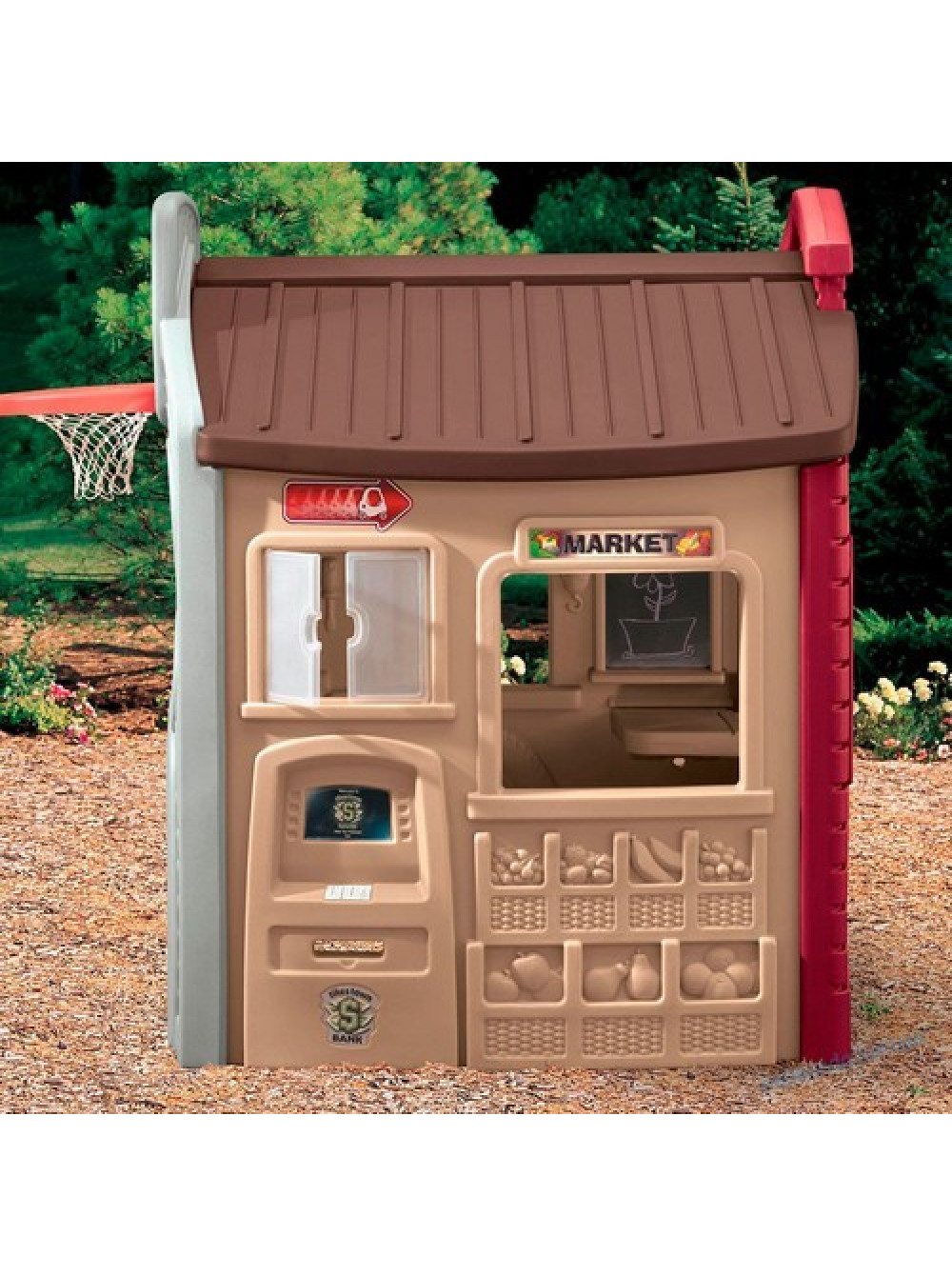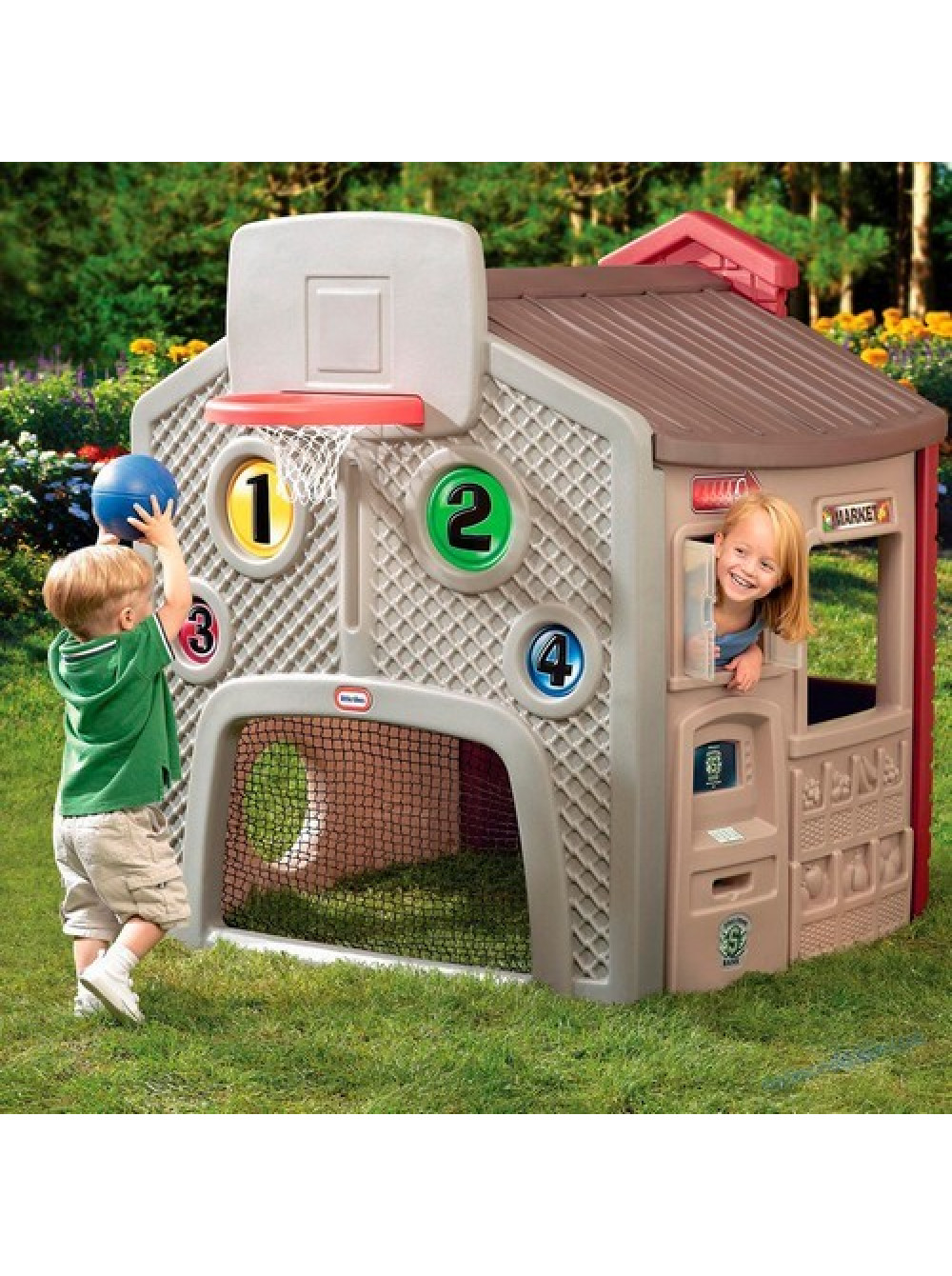Домик для детей Город развлечений - открытая и закрытая игровая площадка из пластика в одном изделии, которая предлагает бесконечные возможности для развлечений, ролевых игр и спортивных состязаний.