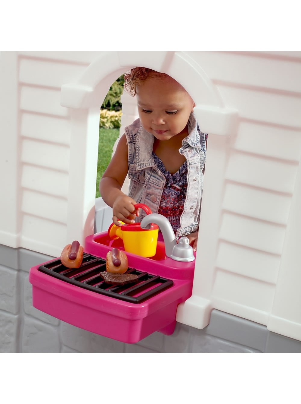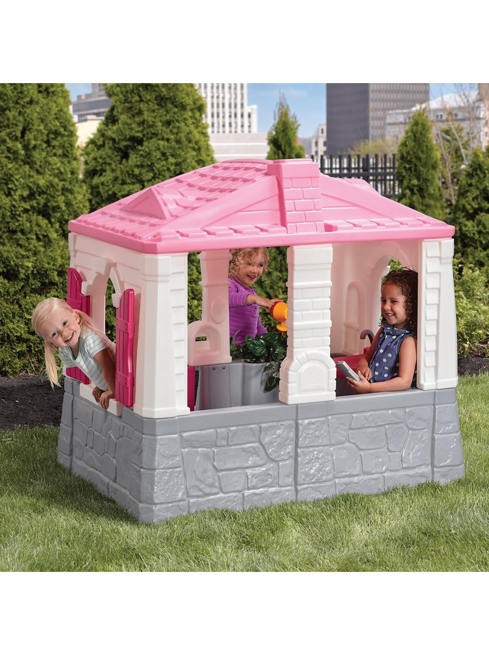 Домик для детей Коттедж во дворе Барби - замечательное решение для игровых занятий детей от полутора лет. Выручит Вас в любую погоду - от солнца можно спрятаться под крышей домика, к тому же конструкция открыта и детям не будет жарко, также в домике они смогут переждать и мелкий дождик. Конструкция надёжна , выполнена из качественного пластика в светлых тонах с розовыми вставками.