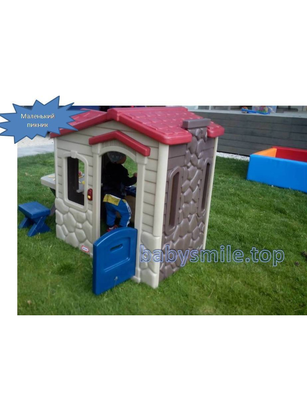 Домик для детей пластиковый Маленький пикник - волшебная игровая зона со столом и лавками в Вашем дворе. Детишки с удовольствием будут играть в этом уютном домике или возле него где-нибудь на заднем дворе или в тени сада. Конструкция достаточно открытая, в ней много окон и калитка, для лучшего обзора и организации группового досуга.