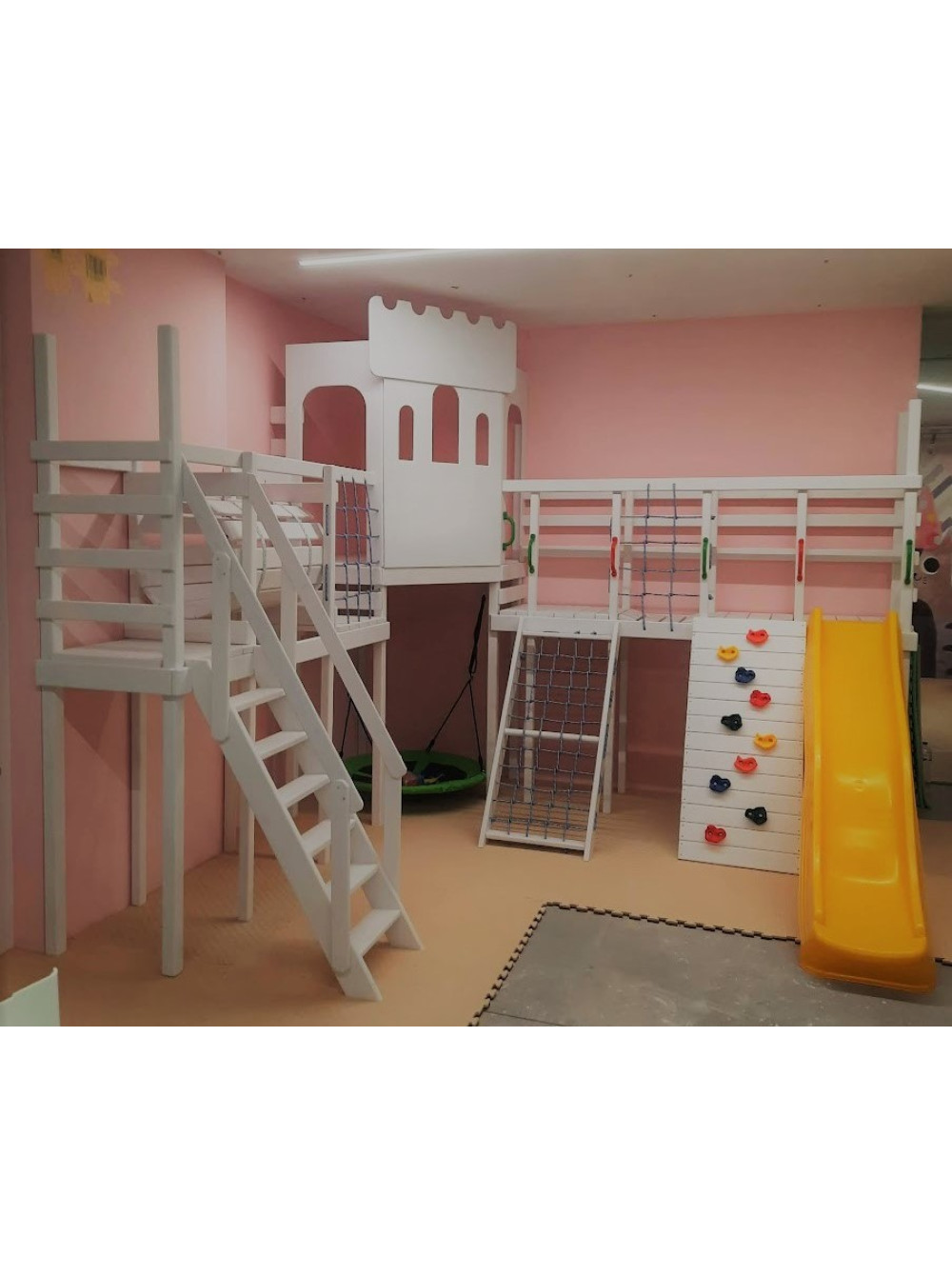 Игровая детская площадка для помещения со спортивными элементами. Это индивидуальный проект для игровой комнаты в детском саду. Можем сделать похожую с учетом Ваших пожеланий. Добавить игровые элементы, в соответствии с вашими размерами.