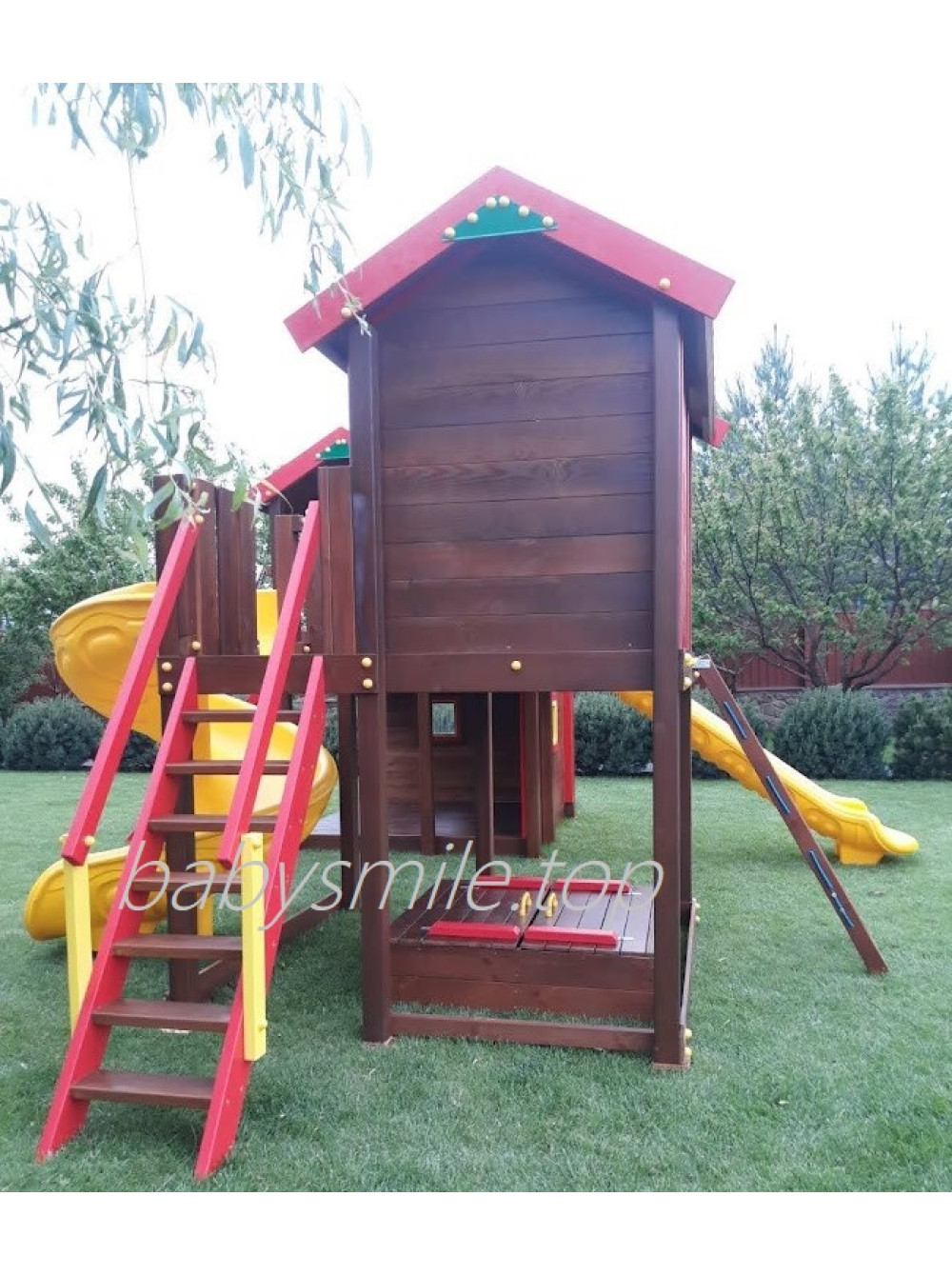 Особого внимания заслуживают две детские горки из литого пластика производства Турция, которыми мы дополнили этот комплекс.