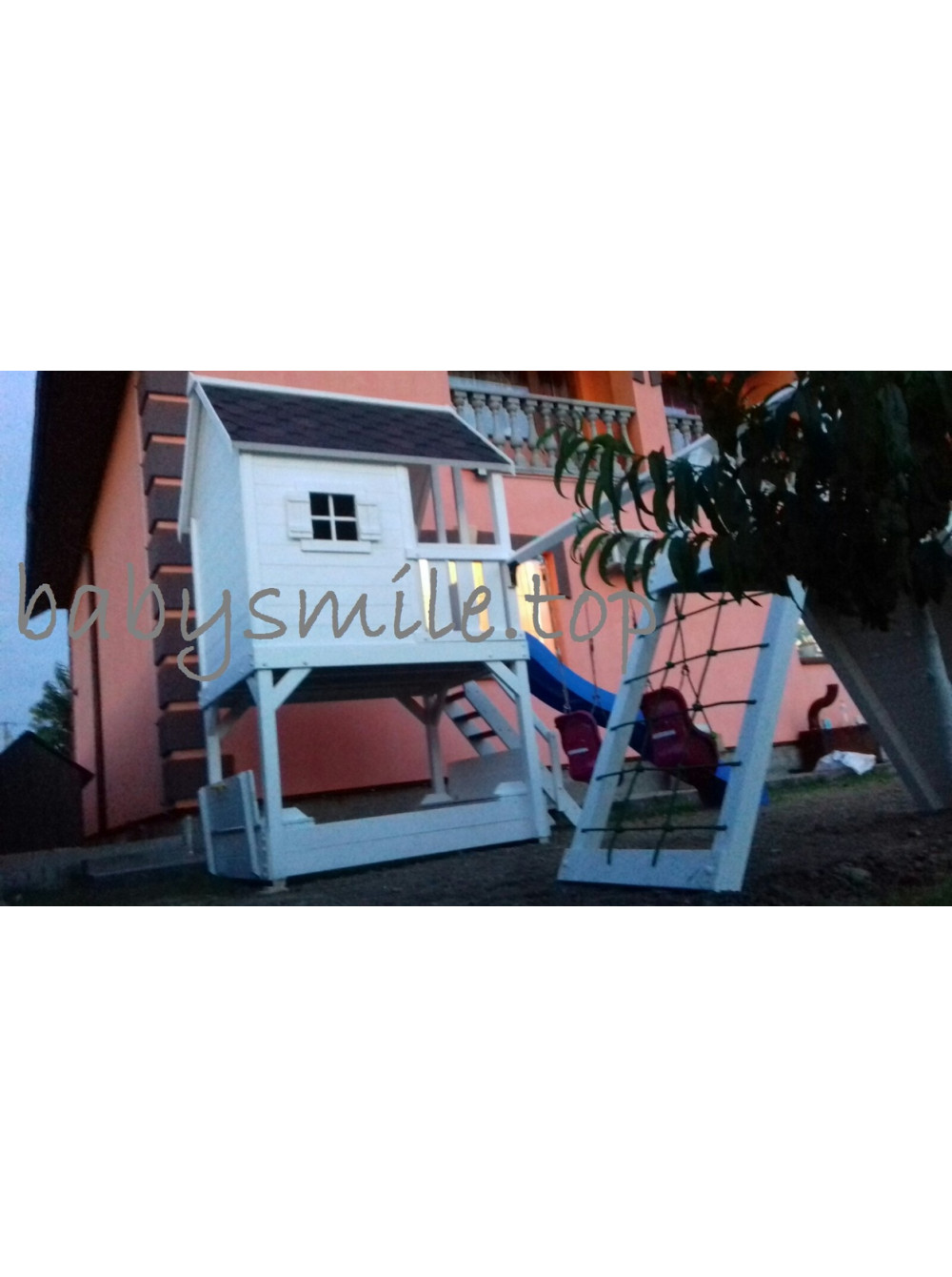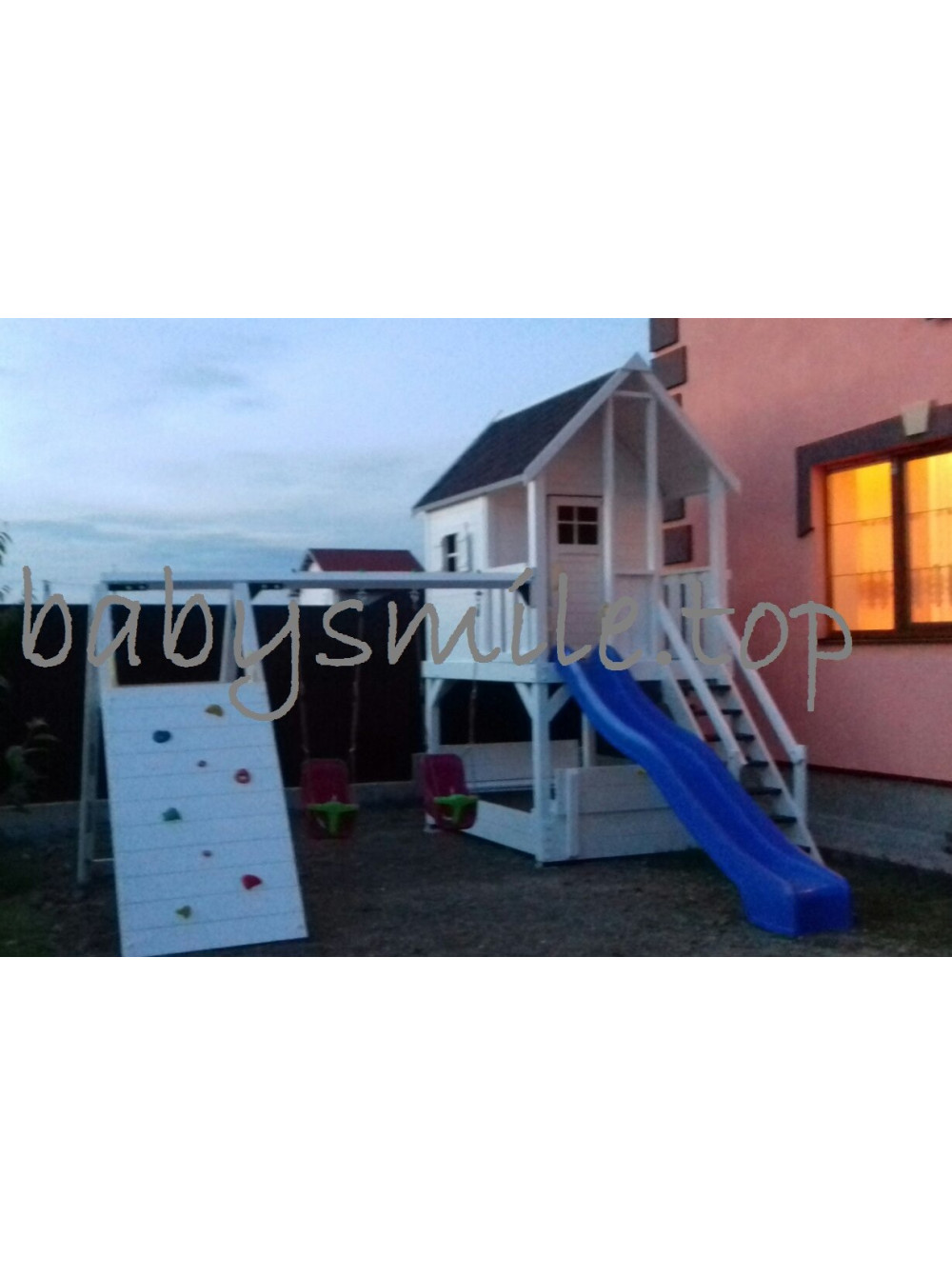 Эта детская площадка изготовлена по индивидуальному заказу нашего покупателя. Возможны различные варианты окрашивания и игрового наполнения.