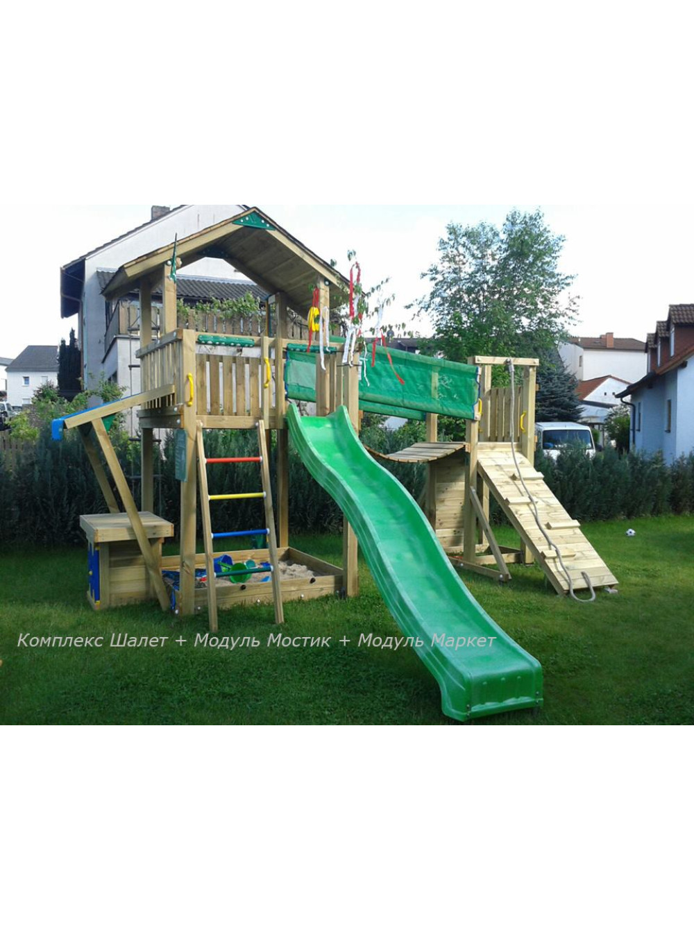 Этот игровой комплекс поставляется в разобраном виде с чертежами и инструкцией по сборке. Также эти площадки можно доукомплектовывать разнообразными игровыми дополнениями: модулем подъём, модулем мост, модулем мини-маркет, качелями, игрой в крестики-нолики, переговорной системой, детским телескопом, или кольцами перекладинами, для особых непосед.