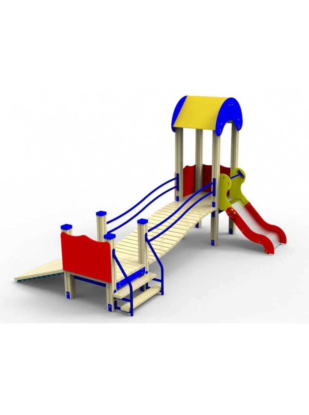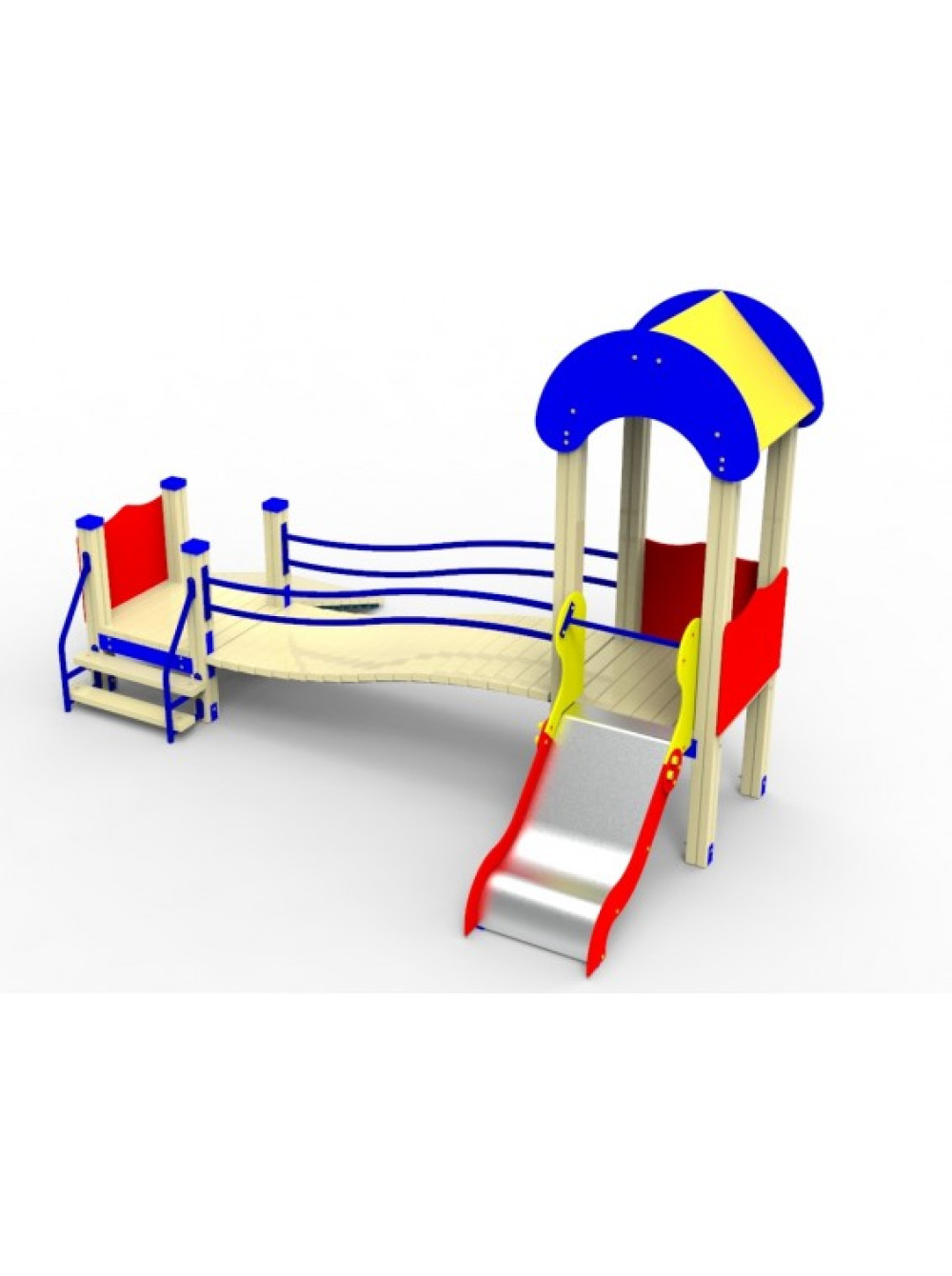 Небольшие ступени для малышовых ножек, низкие перила и невысокая горка - именно то, что необходимо в таком возрасте. Приобрести такую можно как и во двор дома, так и детский сад.