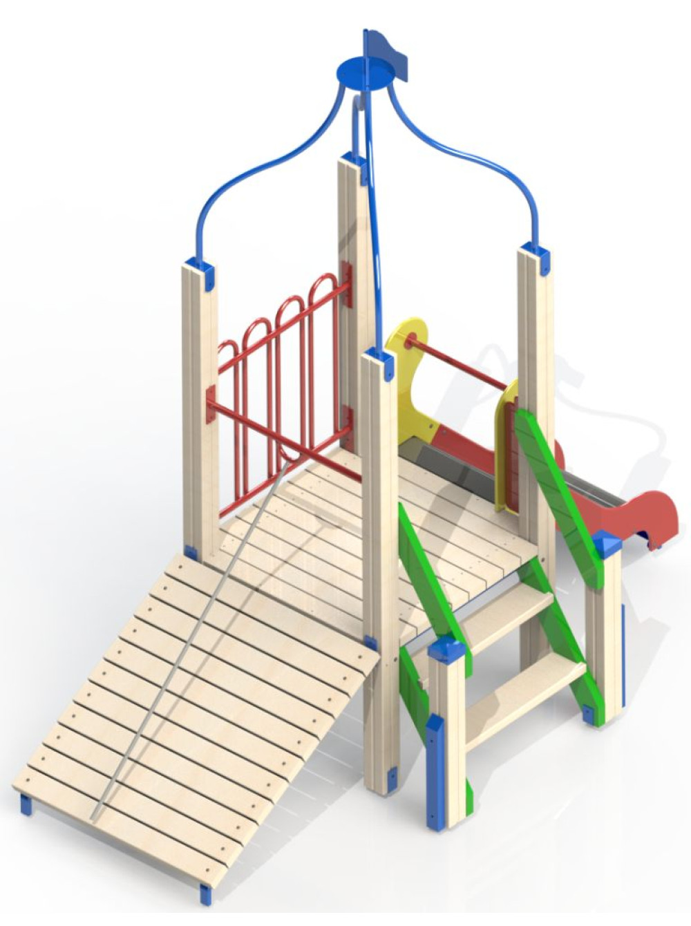 Удобные ступеньки, невысокая горка и канат - отлично подойдут для такого возраста.