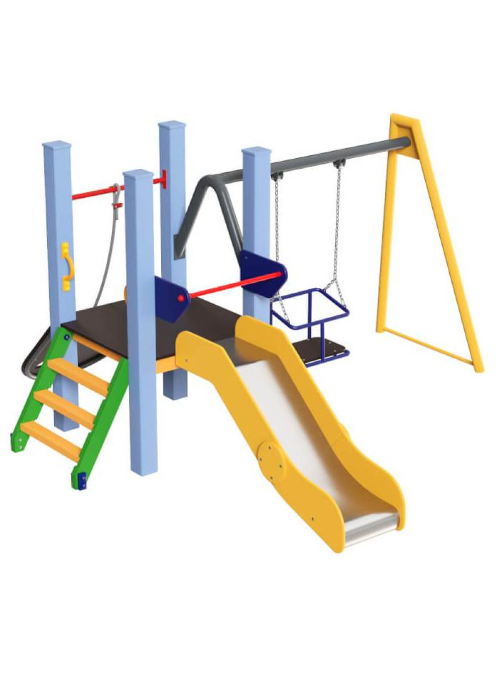 Небольшая горка, качели и канат, прекрасное развлечения для малышей.