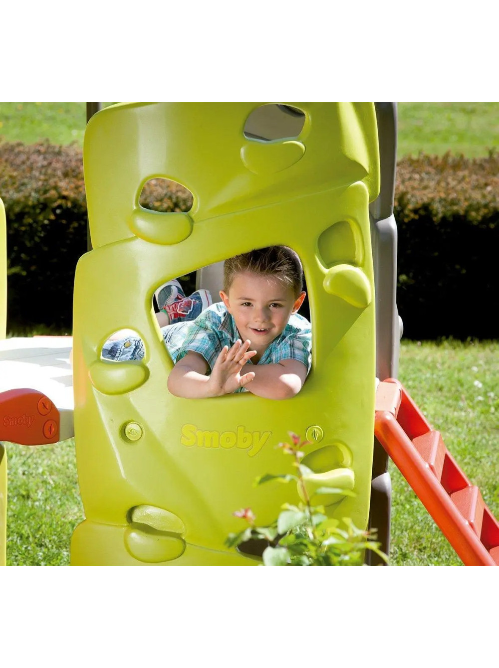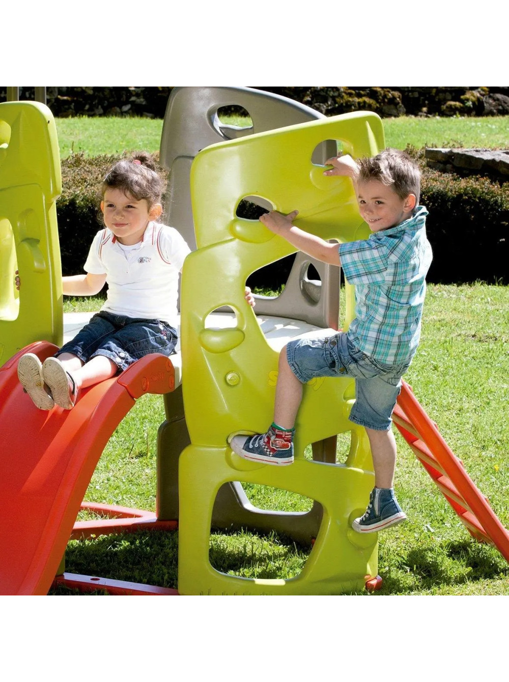 Конструкция выполнена из качественного пластика, безвредного для детей, выдерживает динамические нагрузки до ста килограммов и на ней одновременно смогут играть три-четыре ребёнка. Не деформируется и не выгорает на солнце.