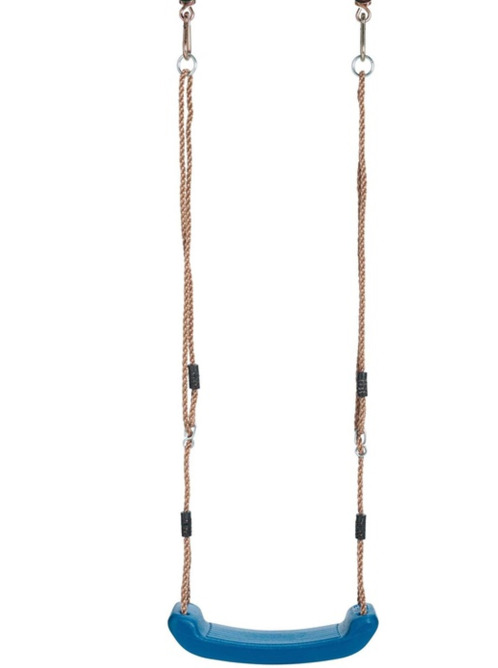 Качели детские формованные Swing Hapro синие имеют пластиковое формованное открытое сидение качели, которое обеспечивает жёсткую и комфортную посадку и подходит для комплектации любой детской площадки с высотой установки (от пола до балки) до двух метров.
