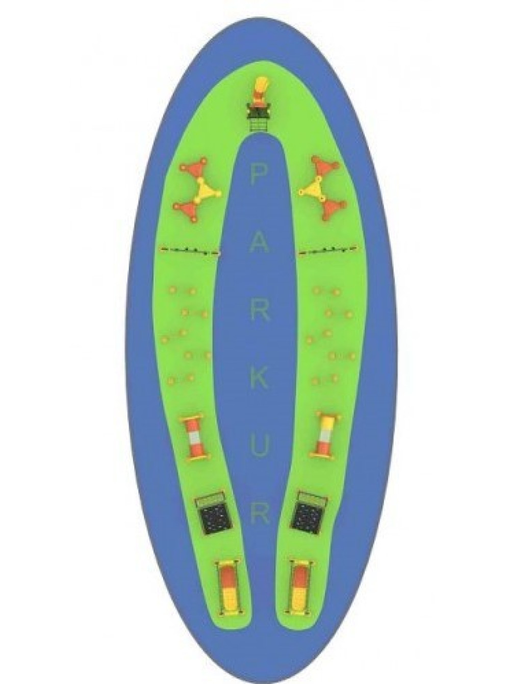 Готовый проект спортивно-игровой площадки Паркур-5 - занимательный комплекс с различными спортивными и игровыми элементами.