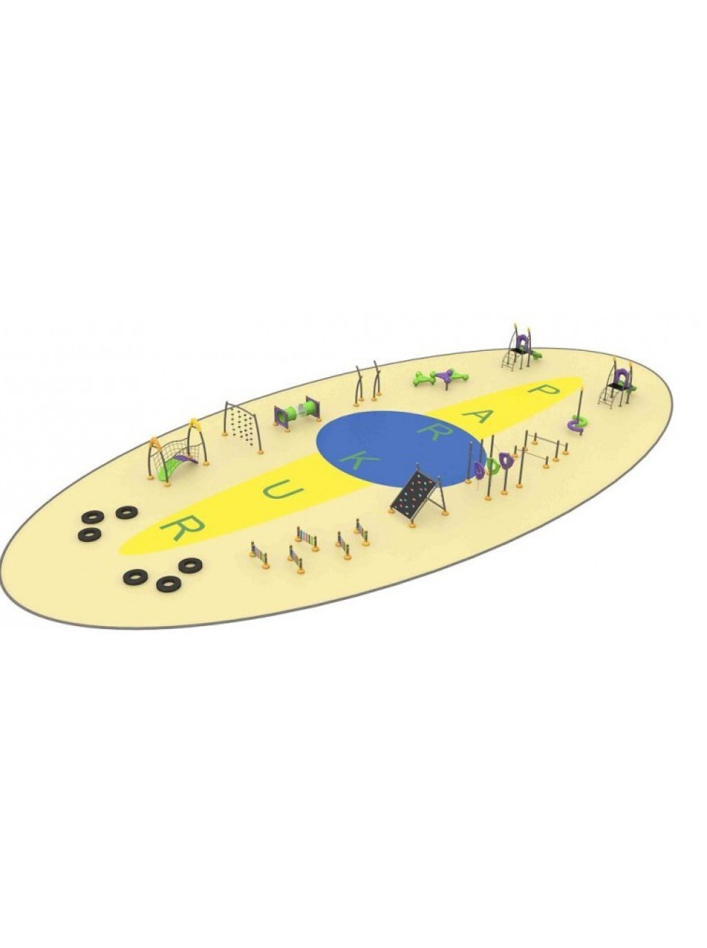 Готовый проект спортивно-игровой площадки Паркур-6 - занимательный комплекс с различными спортивными и игровыми элементами.