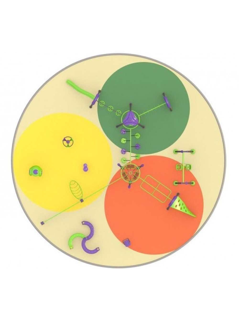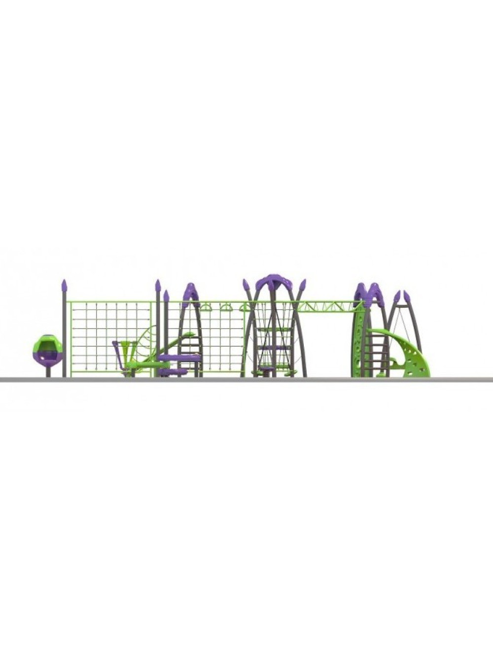 В этом комплексе вместе собраны и объединены различные игровые элементы: качели, канатные сетки, степ платформы, доски для скалолазаний, спортивно-игровые тренажёры. Здесь есть всё для весёлых, занимательных и безопасных игр детворы.
