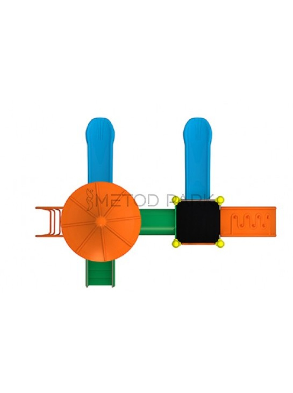 Игровой комплекс выполнен из металла. Электростатическая порошковая краска наносится на металлические детали путем пескоструйной обработки, оцинковки, полировки грунтовки или катафореза. Полиэтиленовые детали изготовлены из антистатического материала, безвредного для здоровья.