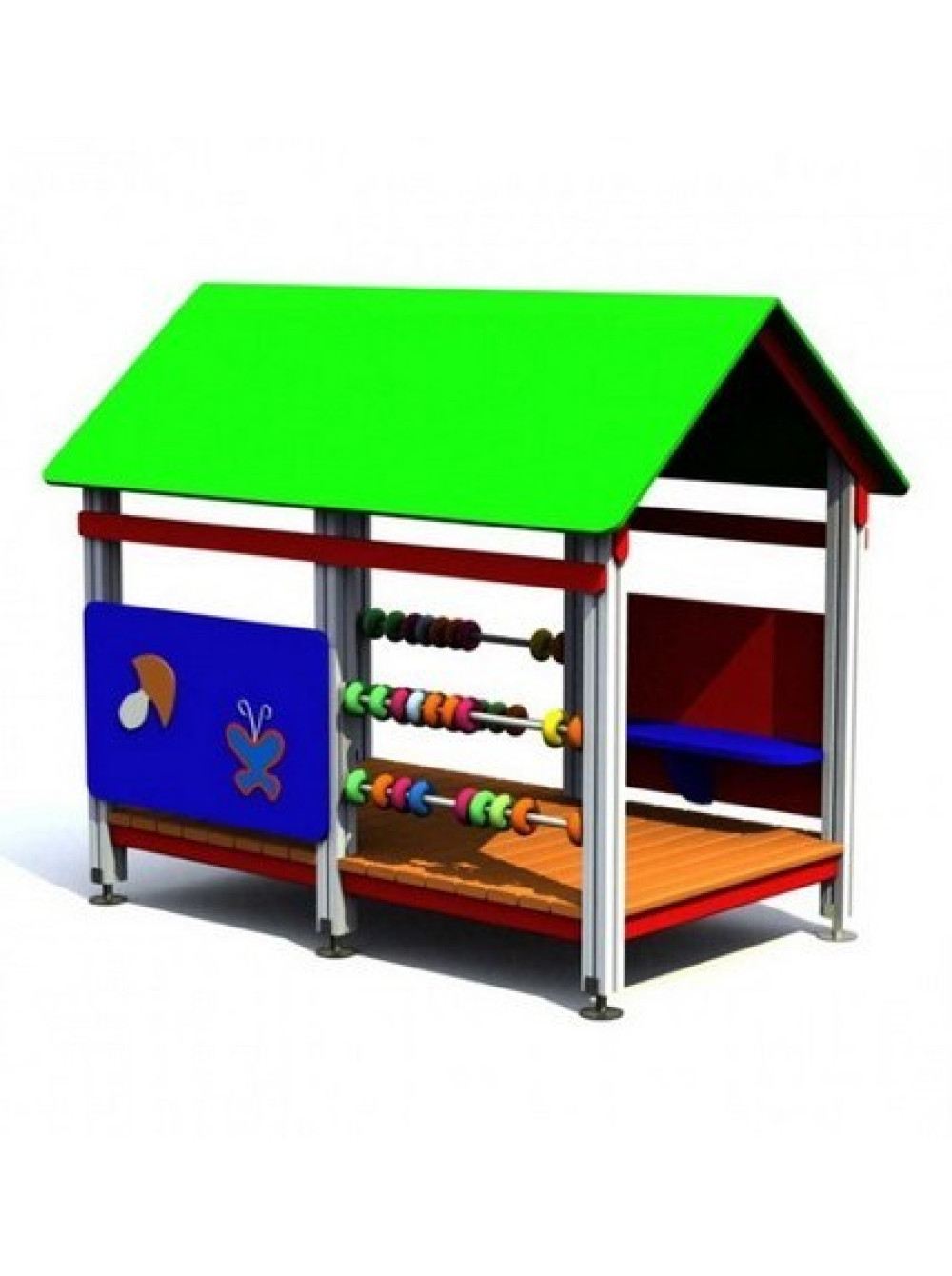 Домик игровой Летний - выполнен в виде открытой веранды с крышей и лавками, внутри которой детвора сможет не только передохнуть, но и укрыться от жарких лучей солнца в полдень или небольшого летнего дождя. К тому же домик оборудован цветными счётами, перебирая которые ребятня сможет размять пальчики и научиться считать.