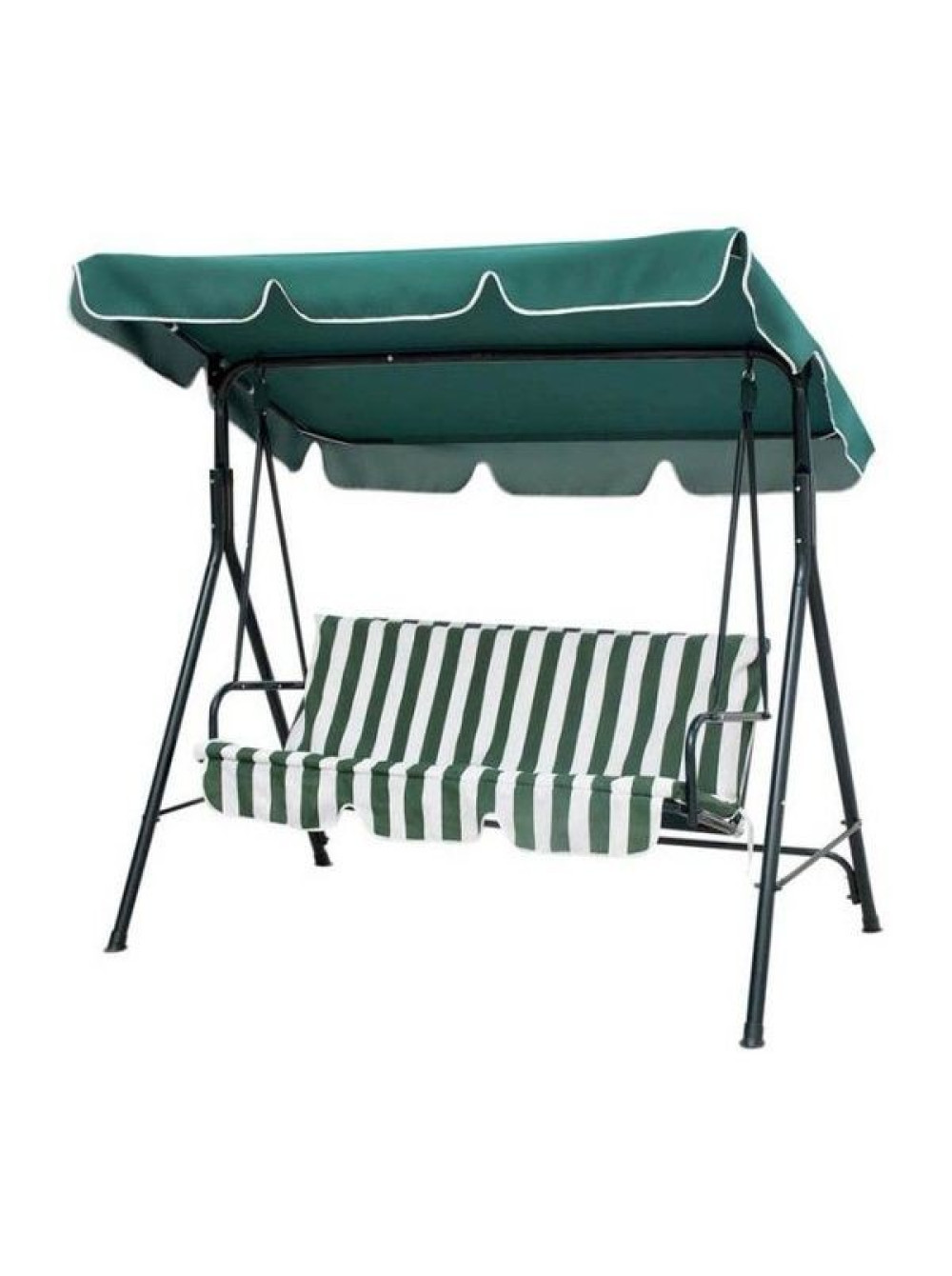 Выполнены из стали, поэтому обладают высокой степенью прочности и устойчивости к нагрузкам. Оснащены широкой скамьёй на которой смогут разместиться два взрослых человека. Также в комплекте солнцезащитный навес, который защитит его владельца от изнуряющих солнечных лучей летом.