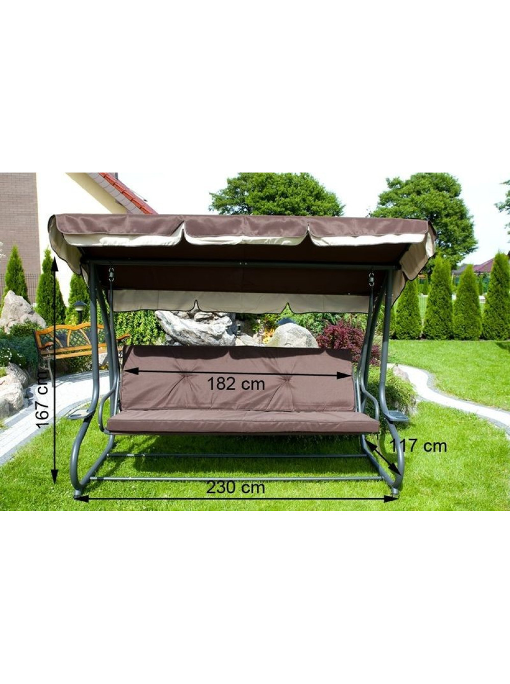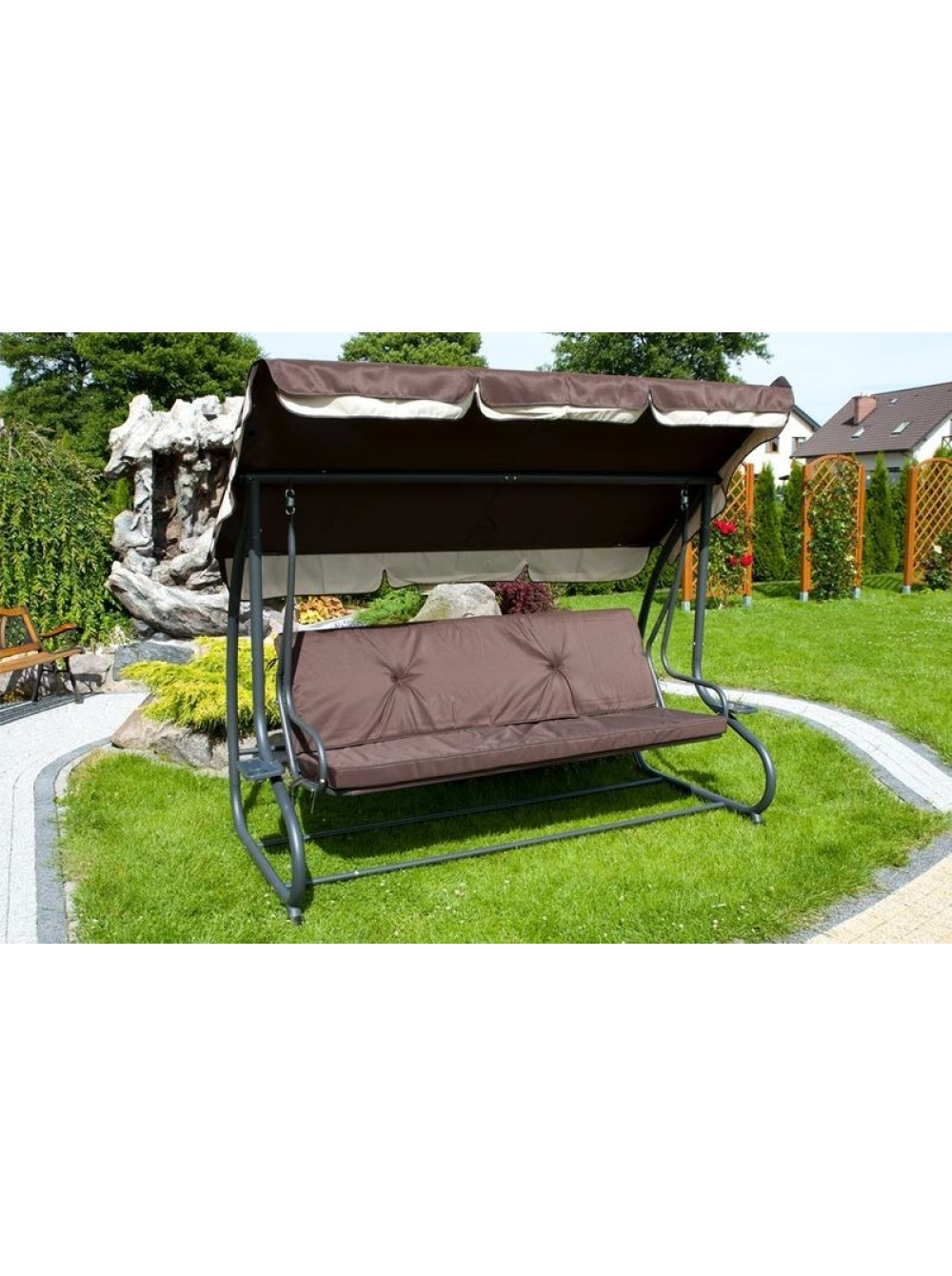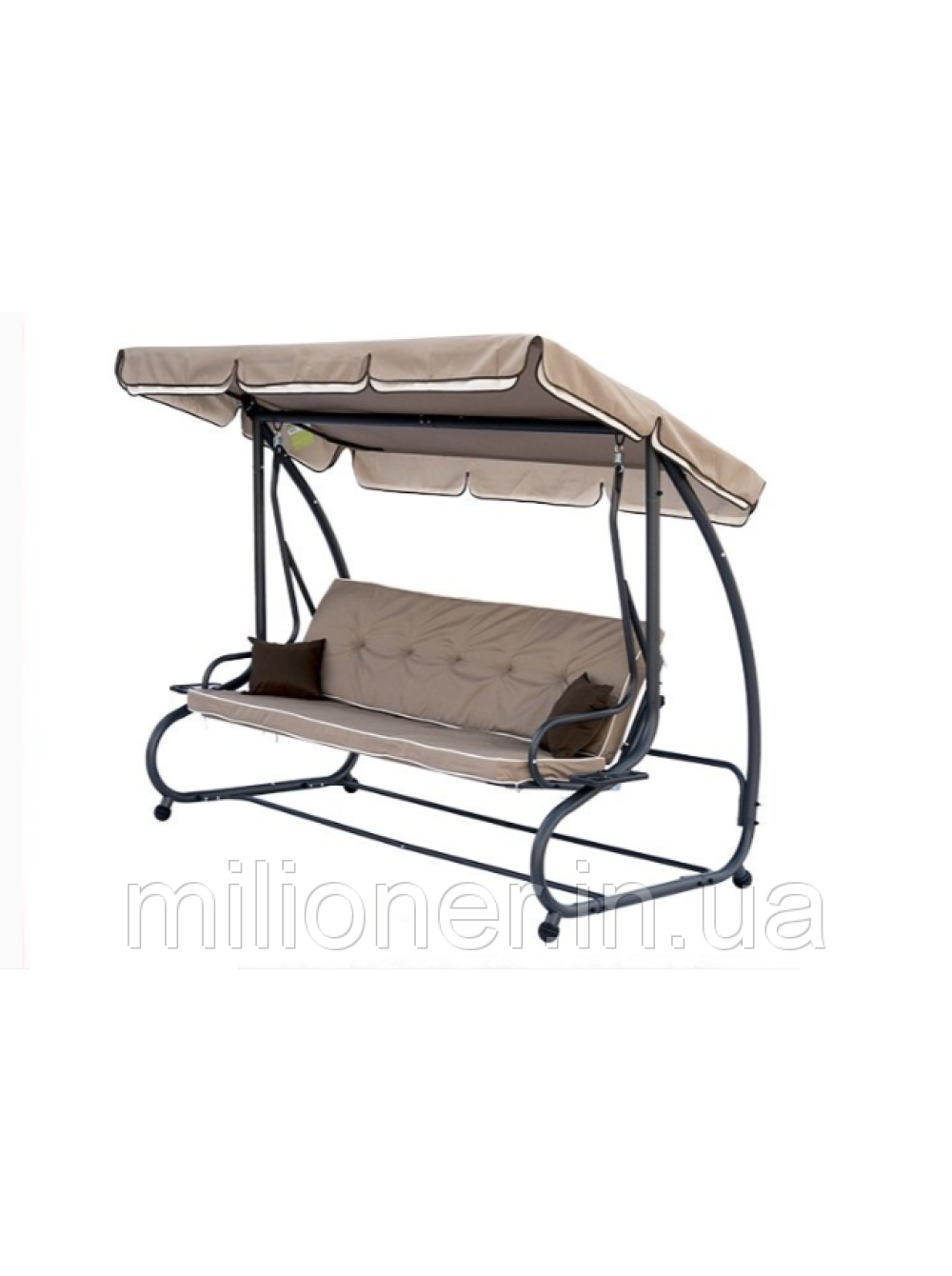 Качели садовые для дачи Аглая - изысканная и красивая модель в цвете капучино. Сделана из стальных труб, что гарантирует высокую степень износоустойчивости. Дополнена удобным мягким матрасом и навесом от солнца.