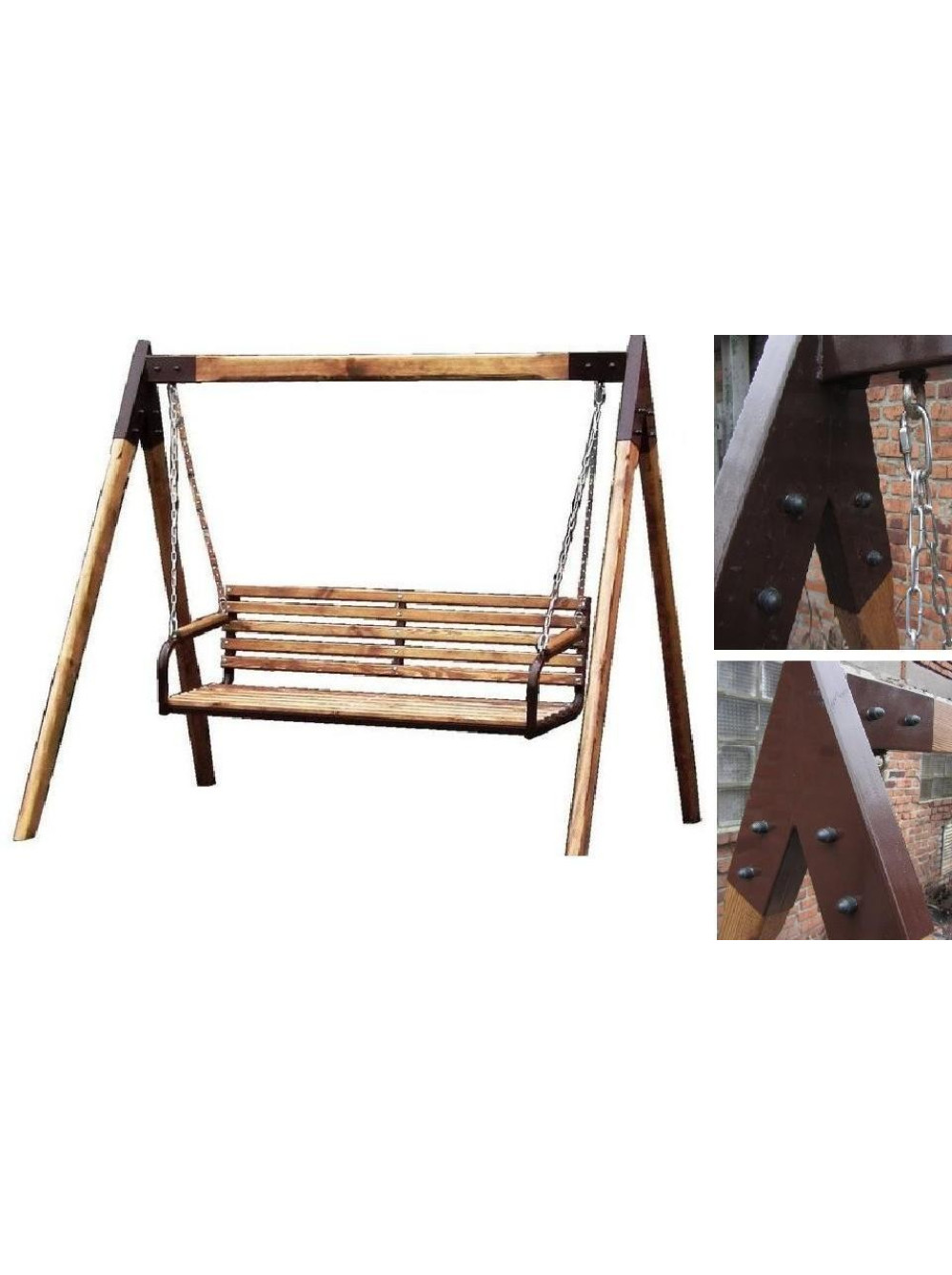 - цвет качелей - натуральная сосна в тонировке "орех", лакированная