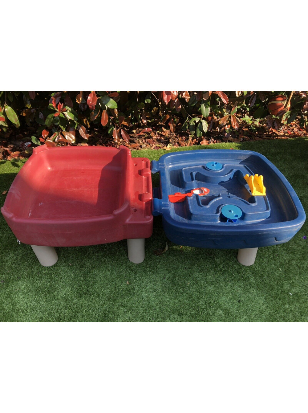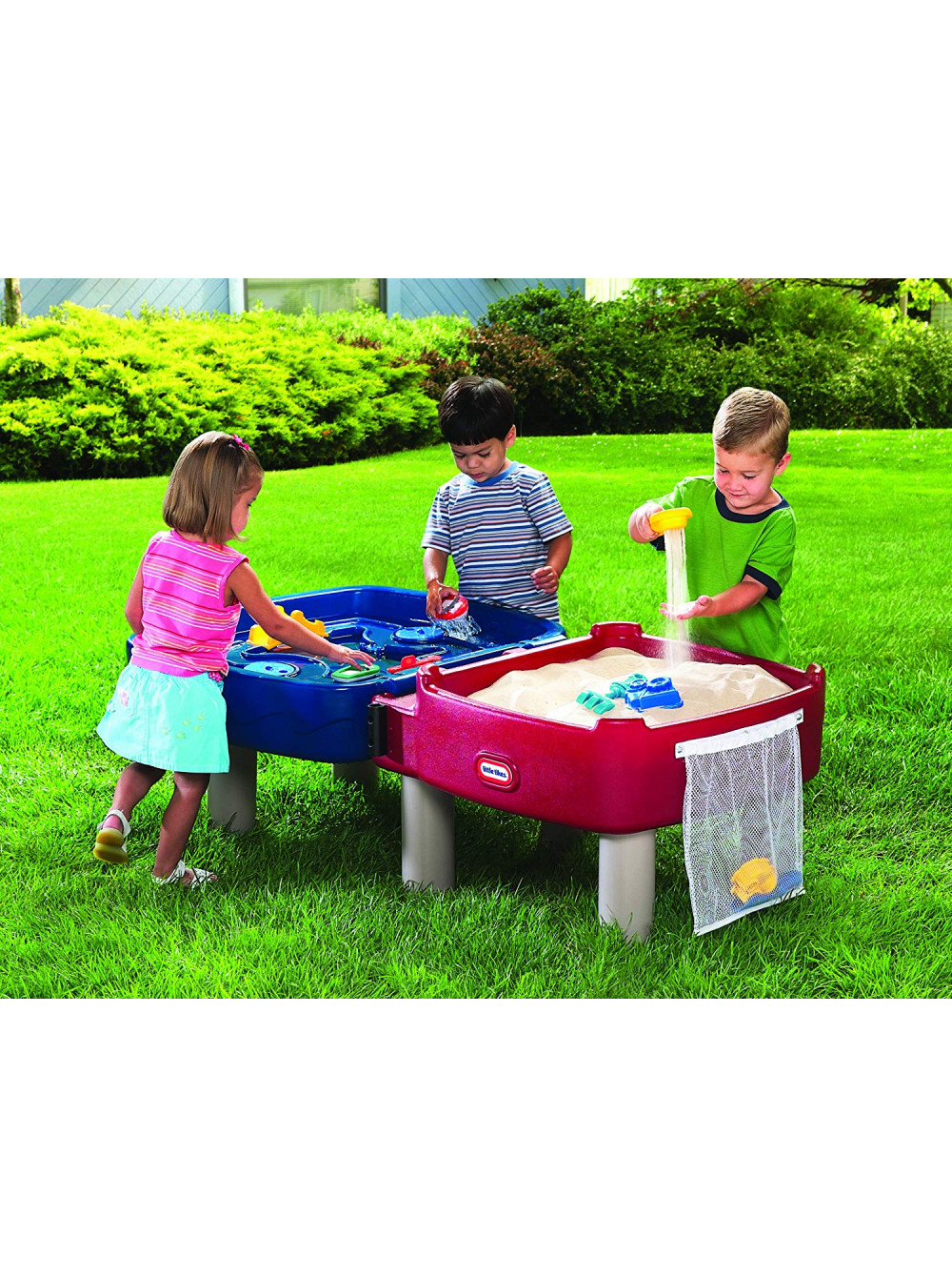 с таким водным столом, песочницей и столиком смогут найти себе занятие одновремено несколько ребят.