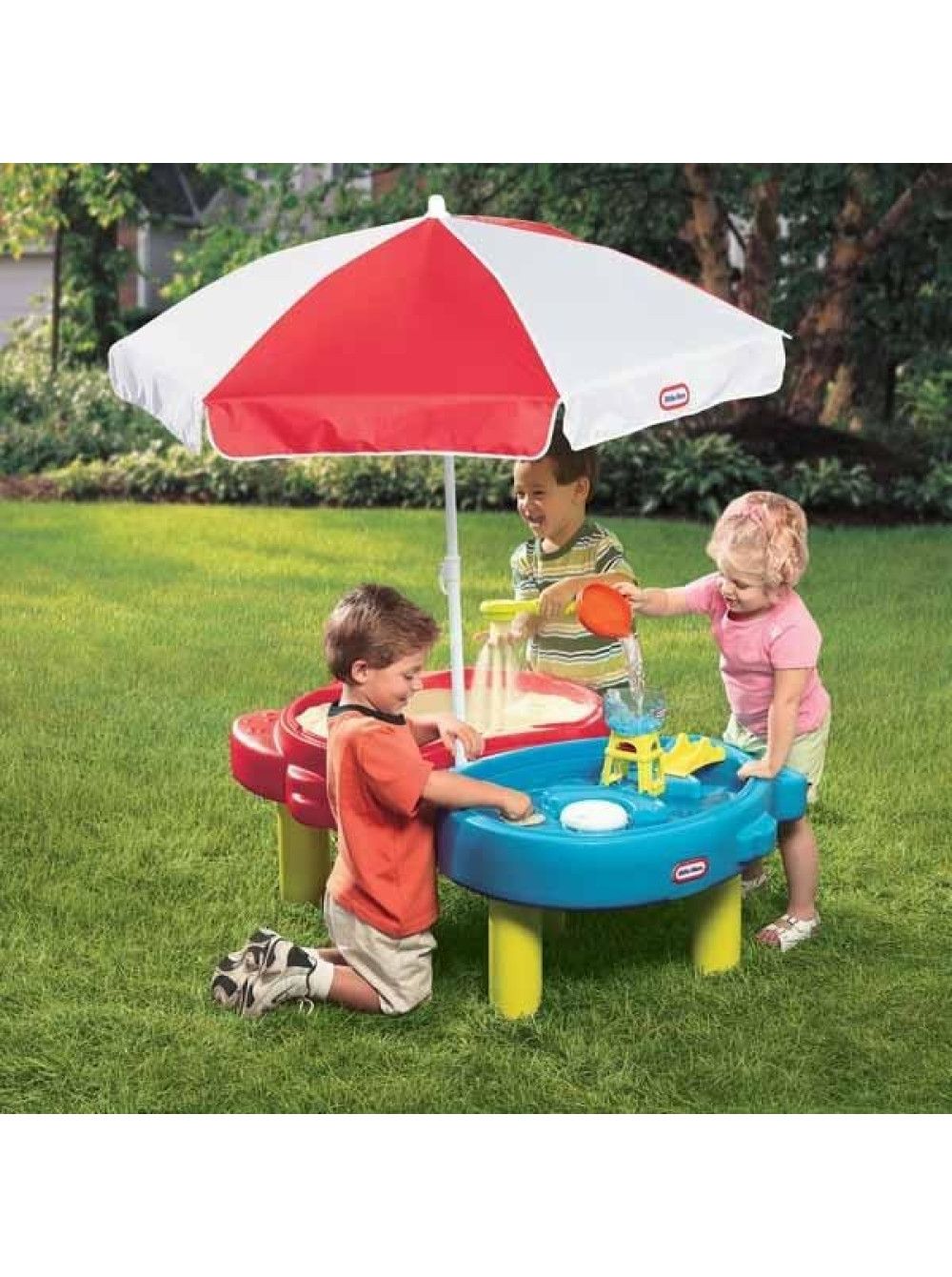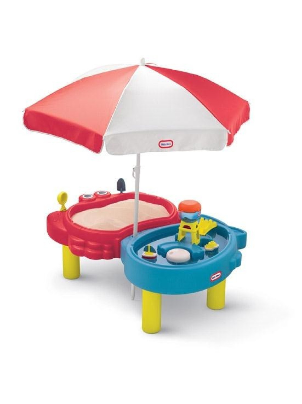 Каждая секция имеет крышку, чтобы обеспечить сохранность содержимого в чистоте. Также столик дополнен солнцезащитным зонтом, что будет совсем не лишним в знойный, солнечный день. Из водной зоны вода спускается с помощью пробки на дне.