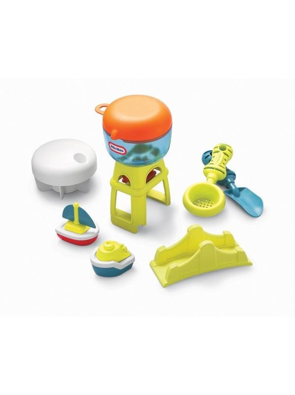 - Игрушки: водяное колесо, две лодки, лопата, сито и мост