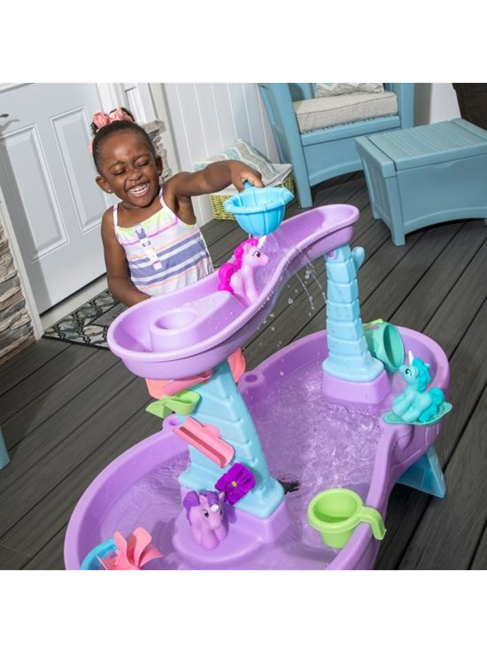 Стол для игр с водой Водопад и единороги с таким игровым комплексом ваш малыш сможет организовать у себя дома свой собственный аттракцион с водой в стиле сказочных единорогов. Для этого нужно совсем немного - большим ведром набрать воду из нижнего бассейна и вылить её в бассейн наверху и наблюдать за игривым водопадом.