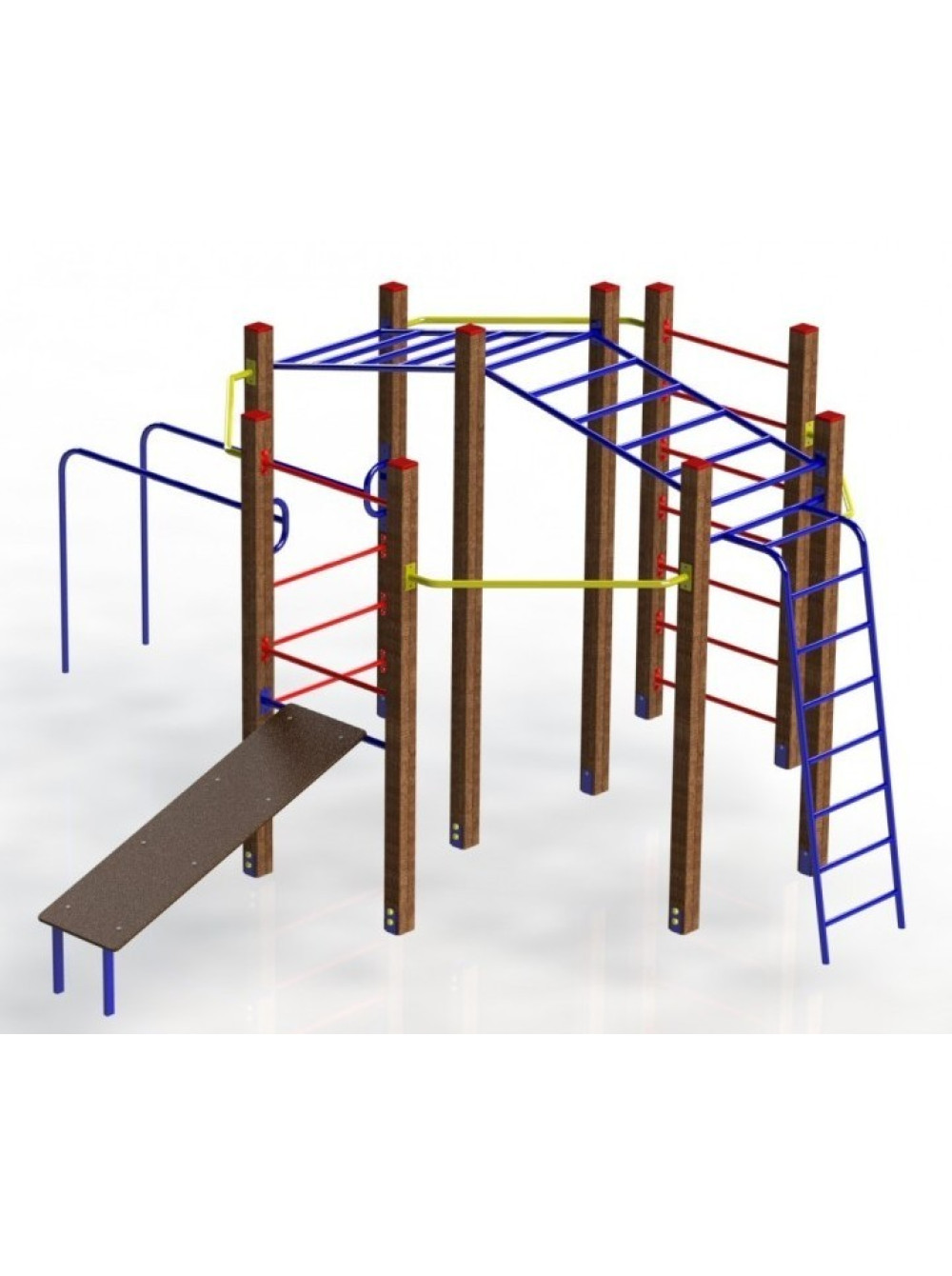 Спортивная площадка для улицы Арлекин отличный спортивный комплекс для улицы, с множеством различных турников, брусьев, лестниц, навесных элементов и стоек. Заниматься здесь смогут как дети, так и взрослые. Рекомендуем для установки на стадионах, школьных дворах, во дворах многоквартирных домов и для индивидуального пользования, например на даче.