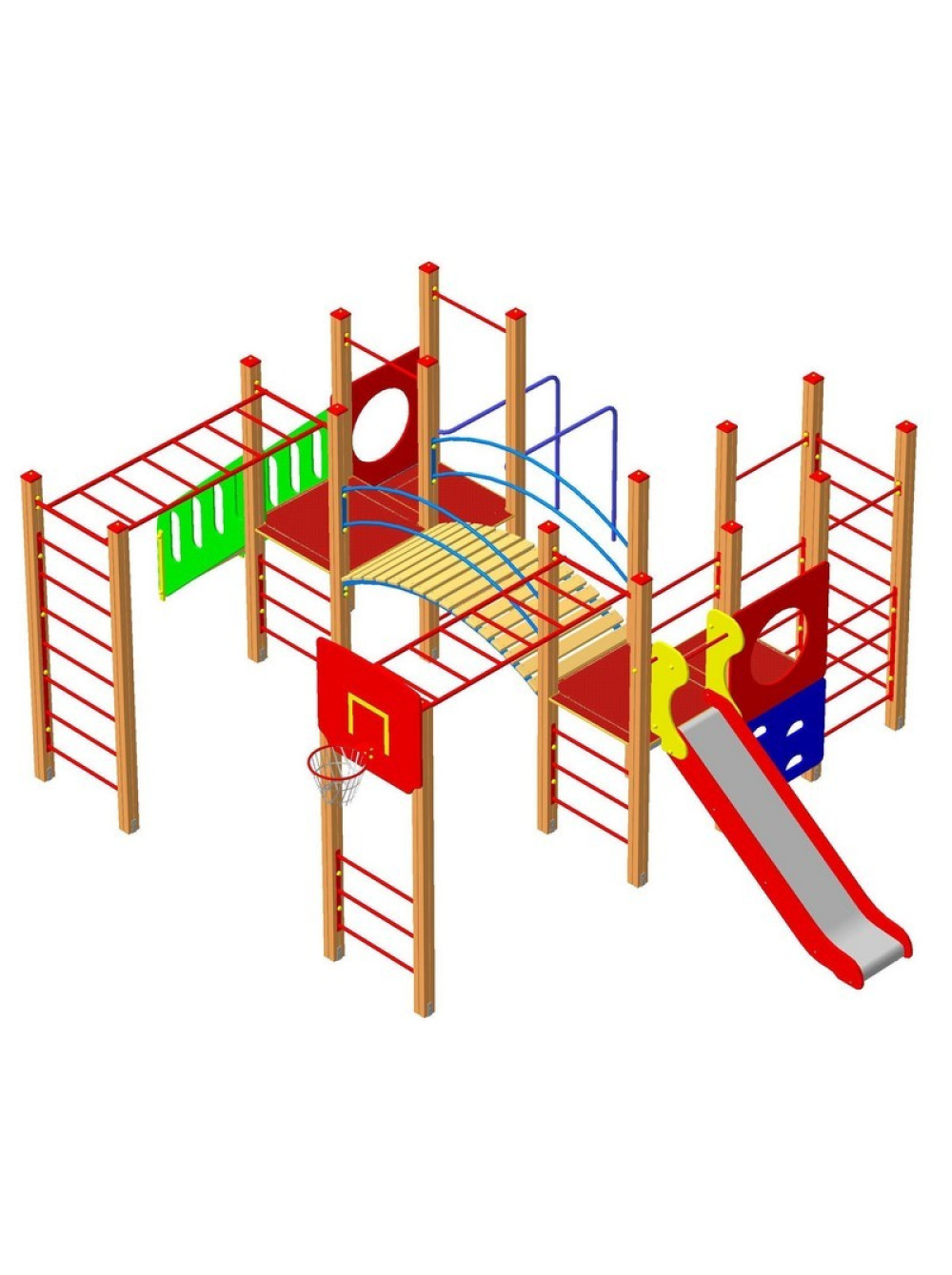 - Влагостойкая ламинированная фанера - мостик, платформы, поручни лестницы для подъёмов, баскетбольное кольцо, лазы.