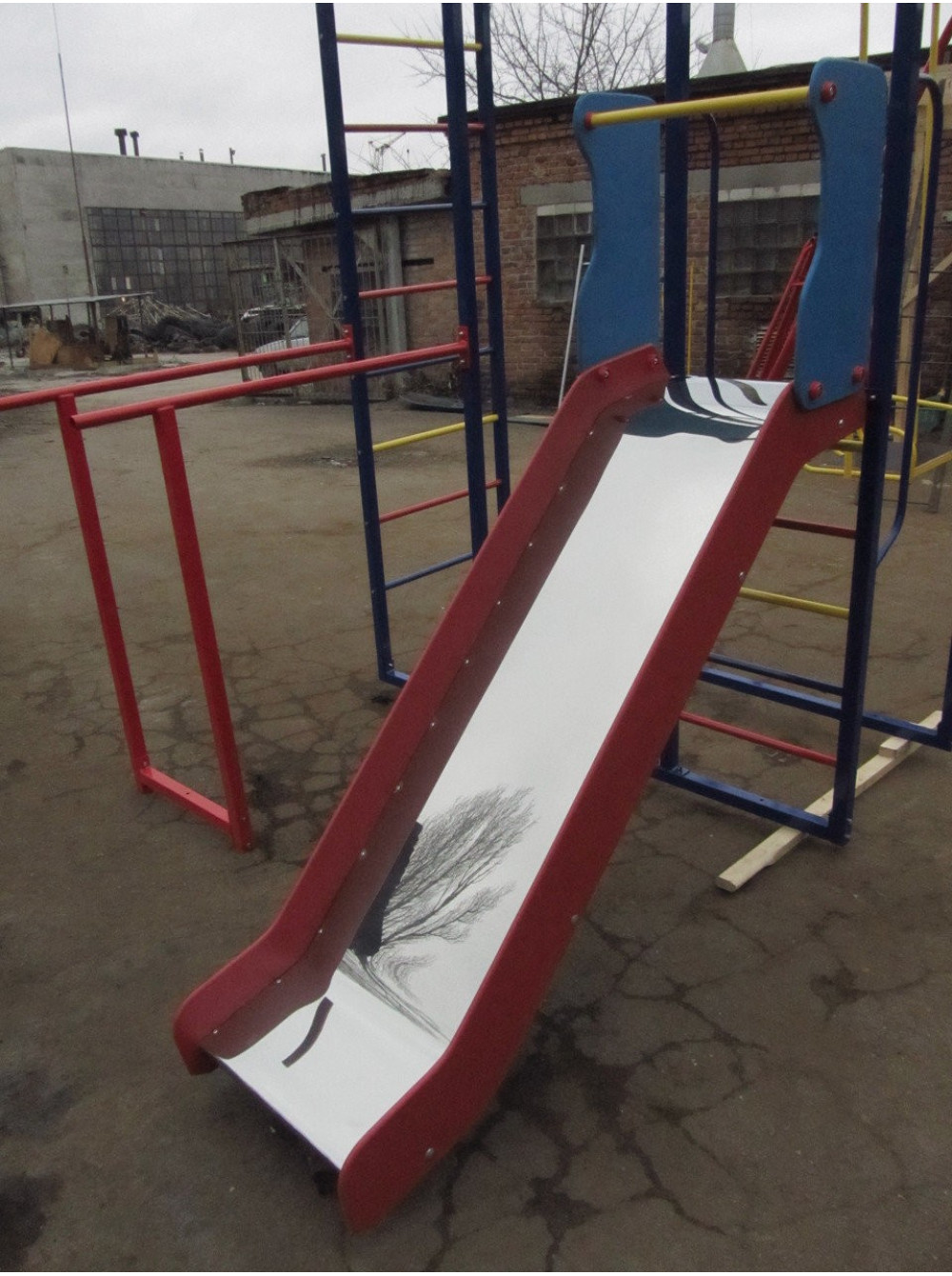 - Горка из нержавеющей стали на металлическом каркасе с бортами из влагостойкой фанеры