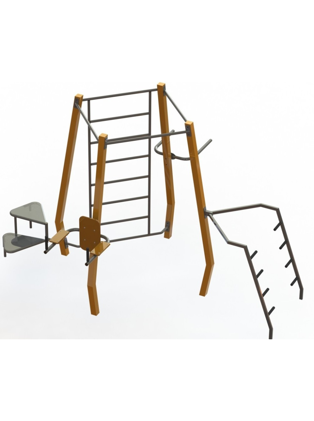 Воркаут для улицы мультифункциональный-5 предназначен для размещения в общественных местах: стадионах, парках, во дворах жилых домов. Уличные тренировки - это доступный городской спорт, который способствует физическому развитию тела. Он состоит из серии упражнений на силу, гибкость и равновесие. Эти упражнения выполняются с использованием только собственного веса на турниках, брусьях и тренажёрах, установленных на разной высоте. С таким спортивными оборудованием Вы можете выполнять подтягивания, отжимания, приседания.