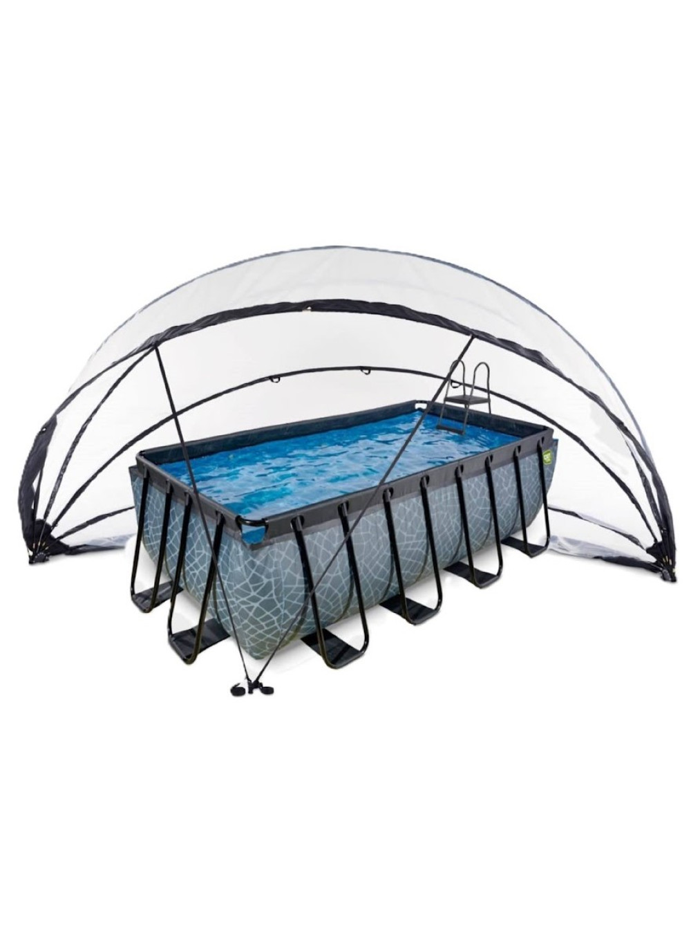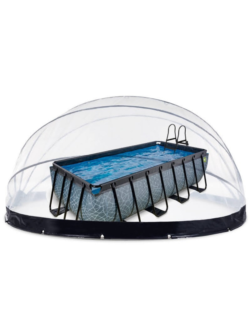 Бассейн EXIT с куполом и тепловым насосом 400×200×100 см, "Камень", песочный фильтр