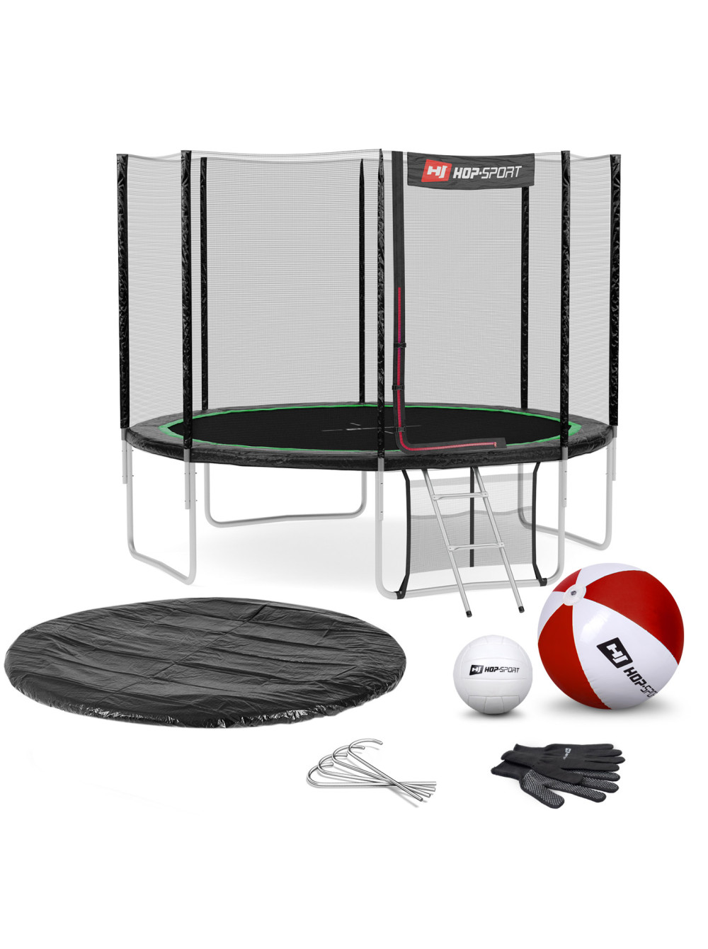 Батут с защитной сеткой Hop-Sport 366 см черно-зеленый - отличный выбор, для тех, кто хочет проводить свой досуг активно и с пользой для здоровья. Прыжки на батуте - это фантастическое развлечение, детям это нравится, и нужно признать, что взрослые тоже это любят. Вы когда-нибудь видели ребенка на батуте без огромной улыбки на лице? Конечно же нет, и мы тоже.