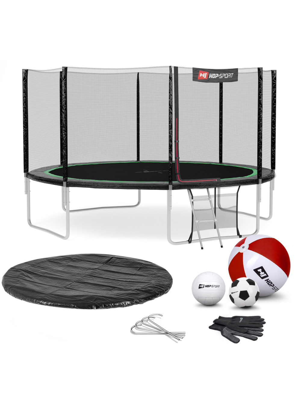 Батут с защитной сеткой Hop-Sport 427 см черно-зеленый - отличный выбор, для тех, кто хочет проводить свой досуг активно и с пользой для здоровья. Прыжки на батуте - это фантастическое развлечение, детям это нравится, и нужно признать, что взрослые тоже это любят. Вы когда-нибудь видели ребенка на батуте без огромной улыбки на лице? Конечно же нет, и мы тоже.