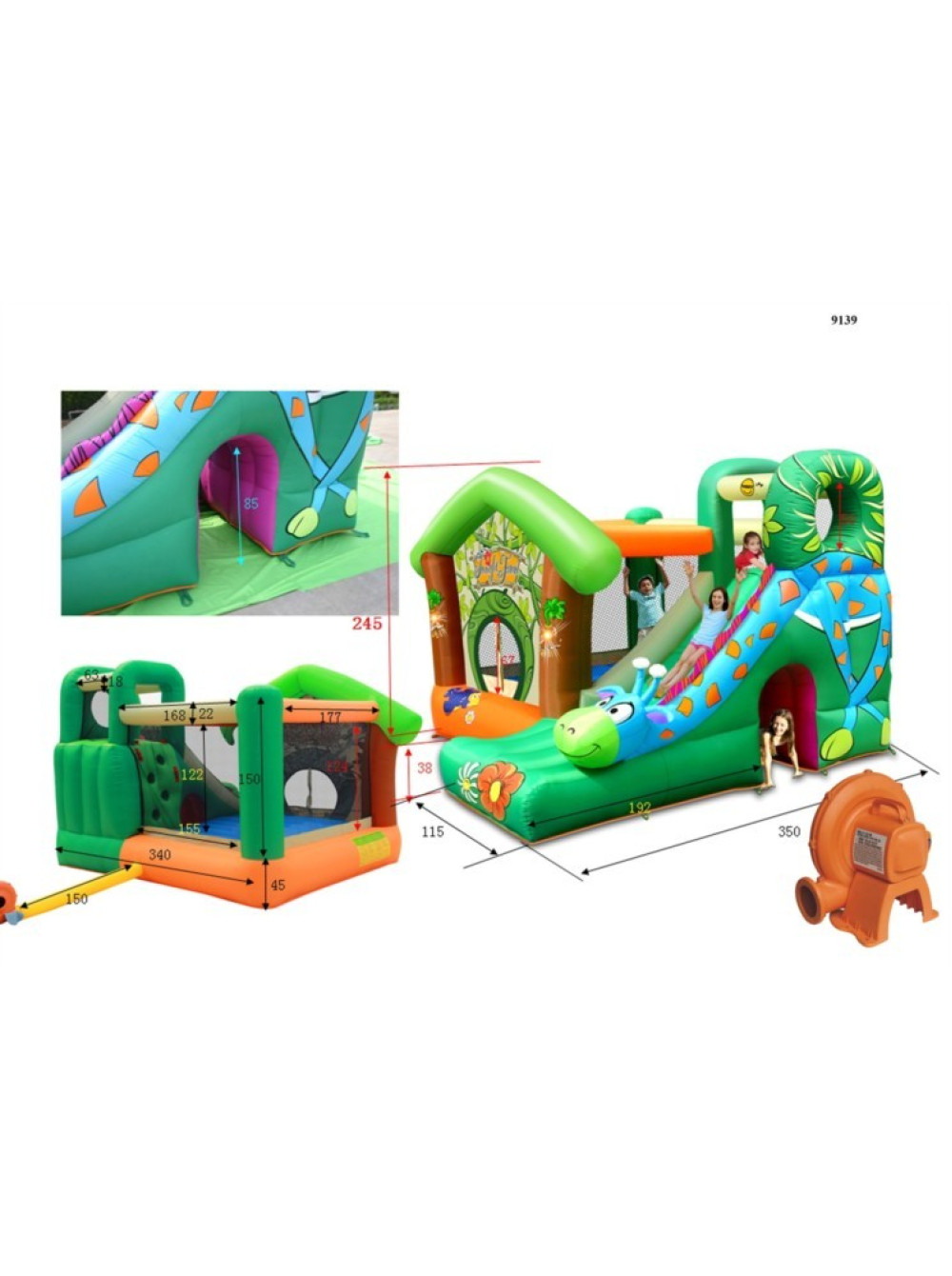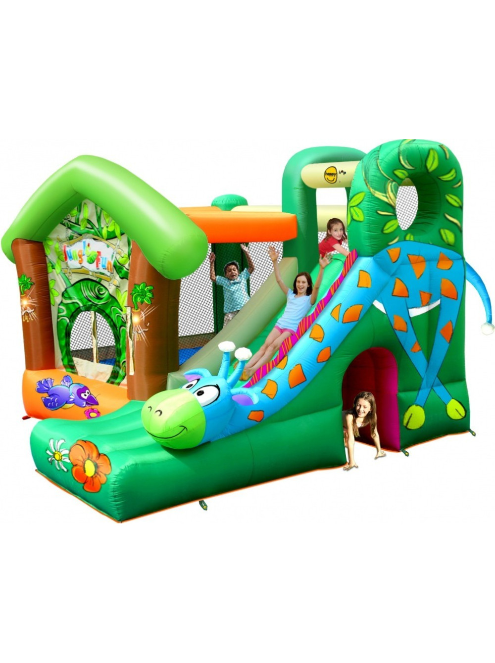 Игровой центр надувной Весёлый жираф Хеппи Хоп - это изделие пользуется большой популярностью у наших покупателей. В такую чудесную игрушку не возможно не влюбиться с первого взгляда. Яркий и красочный с комфортными игровыми зонами: большим батутом и длинной надувной горкой он идеально подойдёт для игр и досуга деток от двух лет.