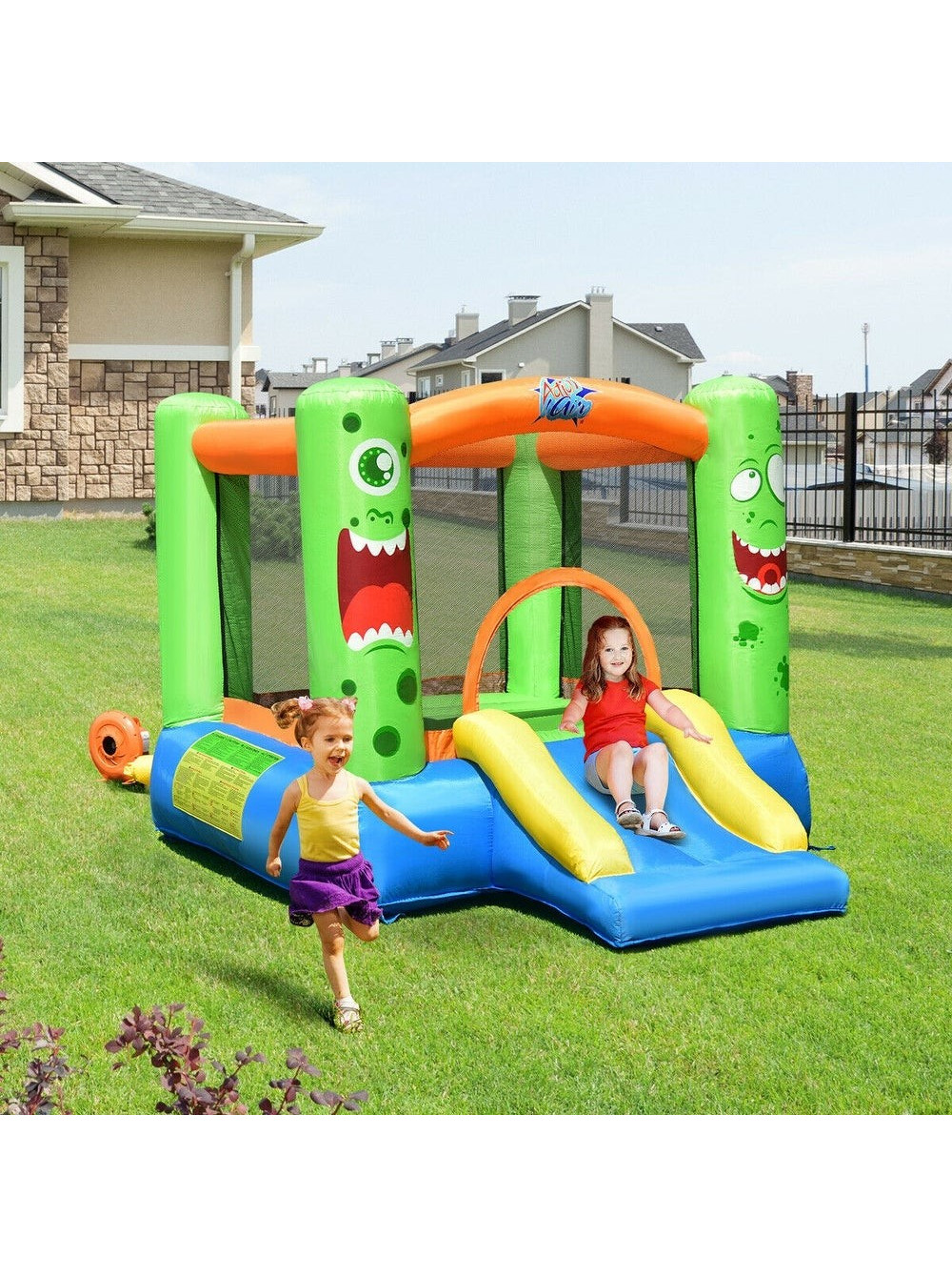 Надувной игровой центр с батутом Добрый монстр - этот замечательный надувной домик станет отличным подарком для ребёнка, помогая его росту и здоровью. Домик выполнен в ярких цветах, с рисунками в виде причудливых существ. Располагает большой площадкой для прыжков и горкой. Место для прыжков закрыто сеткой со всех сторон, чтобы ребёнок был в безопасности и Вы могли за ним наблюдать.