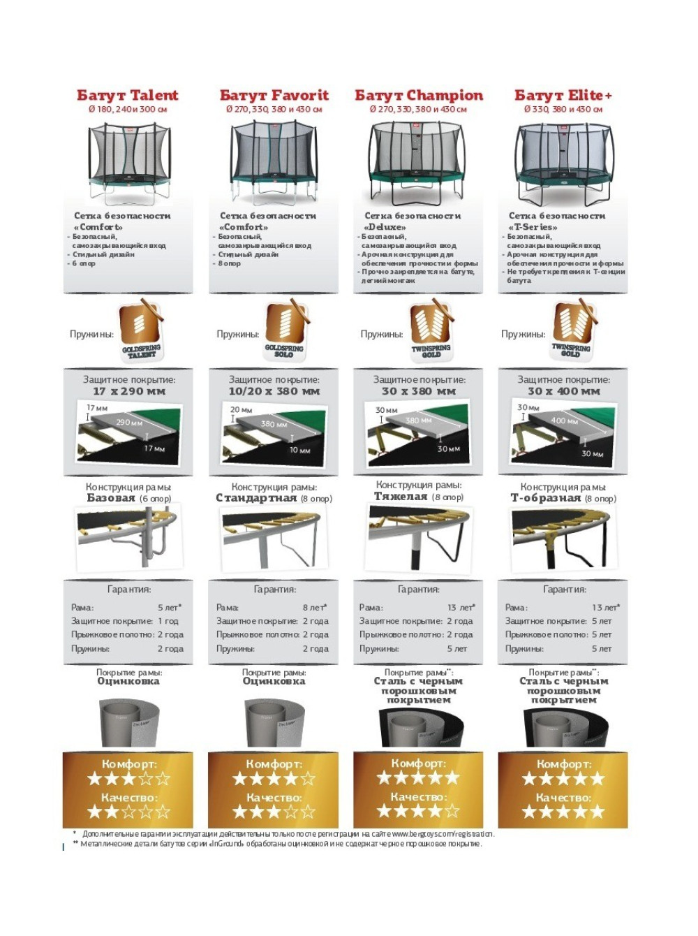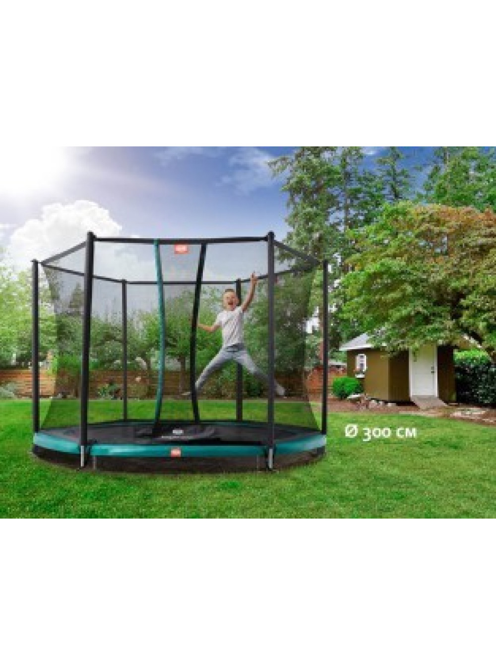 Конструкция оснащена защитной сеткой с самозакрывающимся входом InGround,что делает заход и выход на батут более удобным. Изделие устойчиво к УФ-излучению и влаге.