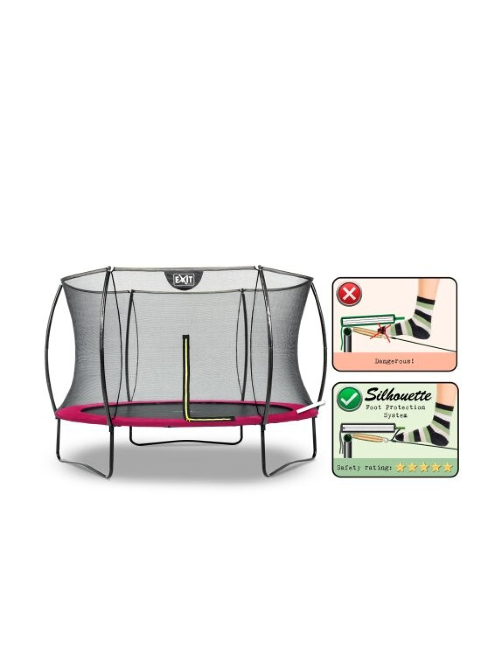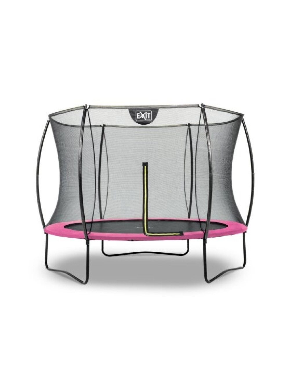 Батут EXIT Silhouette 305 см розовый - красивый, безопасный, долговечный, современный и прекрасно разработанный, без сомнений, будет великолепно смотреться в любом саду или дворе дома. Конструкция достаточно устойчива и поставляется в комплекте с защитной сеткой, которая удобно открывается с помощью флуоресцентной молнии. Батут имеет контрастный чёрный матовый цвет с включениями ярко-зелёных акцентов, что делает его элегантным и привлекательным.