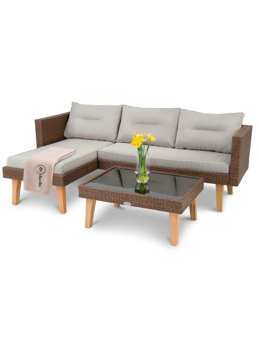 Комплект садовой мебели Imola коричневый - обустройте свой сад или веранду шикарным набором мебели для сада из ротанга и подарите себе незабываемые моменты наслаждения и релакса в тёплые летние деньки или уютные вечера.