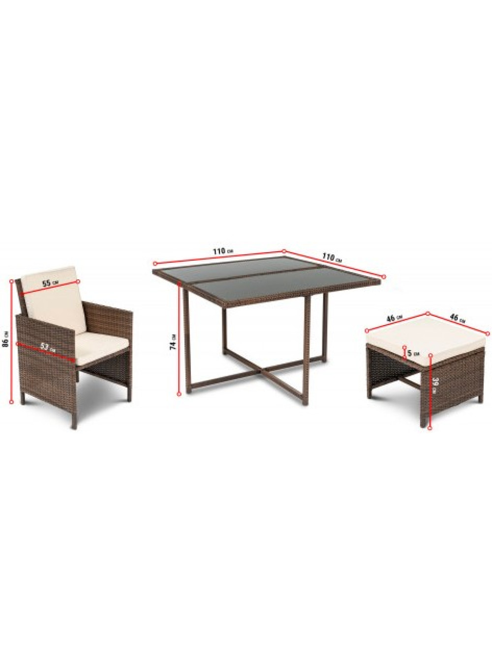 Он идеально подходит для вашего патио, сада или веранды, за широким столом места хватит всем. Этот комплект мебели для дачи - отличное дополнение к любой обстановке на улице или в помещении. Квадратная столешница выглядит элегантно, а закаленное стекло толщиной 5 миллиметров гарантирует прочность и длительное пользование, легко моется.