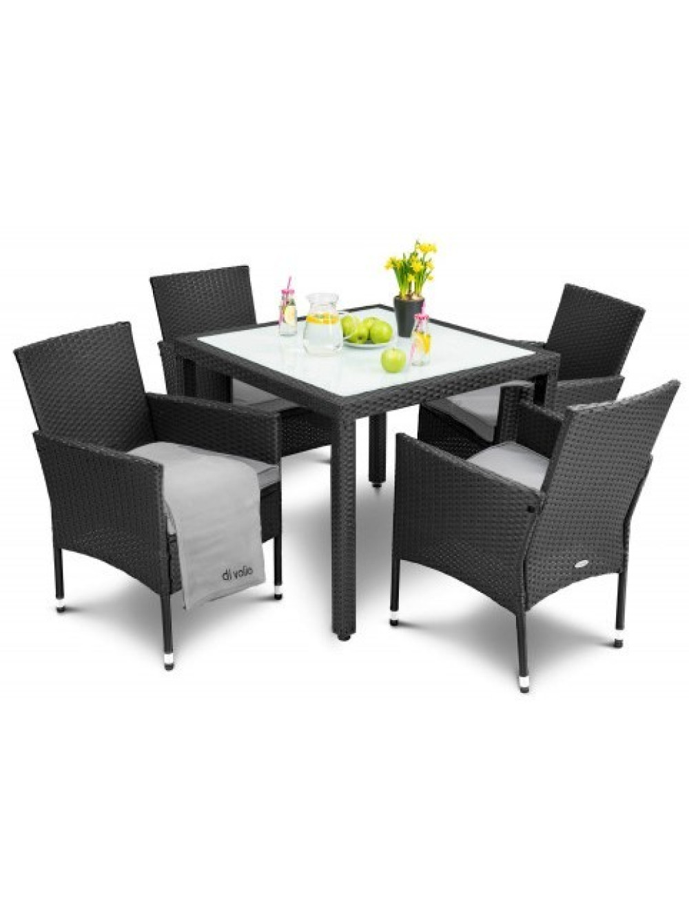Он идеально подходит для вашего патио, сада или веранды, чтобы расслабиться, почитать любимую книгу или спокойно отдохнуть в одиночестве. А если к Вам наведаются гости, то за широким столом места хватит всем. Этот комплект мебели для дачи - отличное дополнение к любой обстановке на улице или в помещении. Квадратная столешница выглядит элегантно, а закаленное стекло толщиной 5 миллиметров гарантирует прочность и длительное пользование, легко моется.